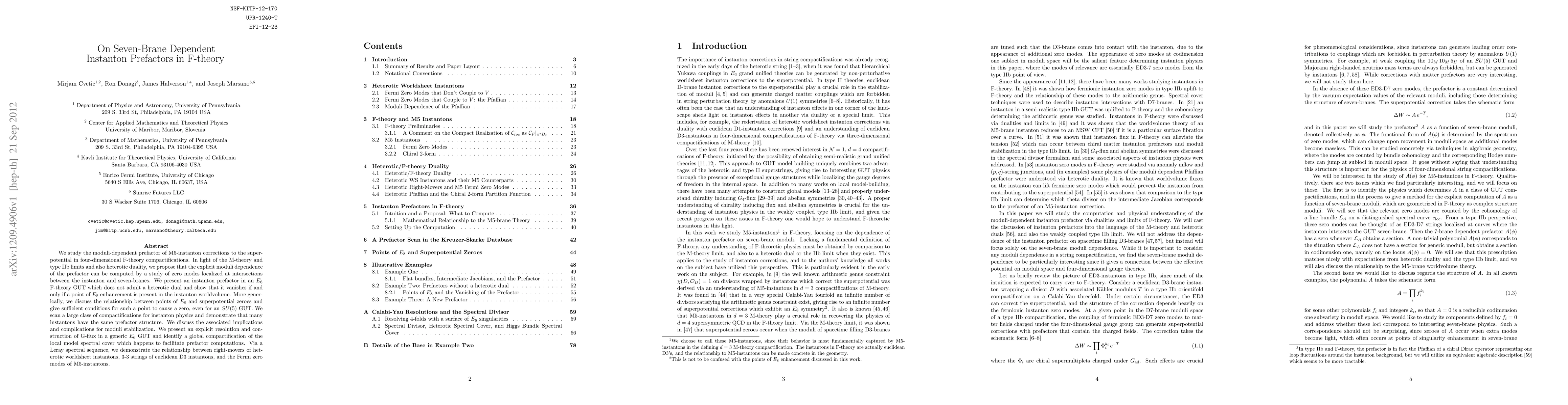 We study the moduli-dependent prefactor of M5-instanton corrections to the superpotential in four-dimensional F-theory compactifications. In light of the M-theory and type IIb limits and also heterotic duality, we propose that the explicit moduli dependence of the prefactor can be computed by a study of zero modes localized at intersections between the instanton and seven-branes. We present an instanton prefactor in an E_6 F-theory GUT which does not admit a heterotic dual and show that it vanishes if and only if a point of E_8 enhancement is present in the instanton worldvolume. More generically, we discuss the relationship between points of E_8 and superpotential zeroes and give sufficient conditions for such a point to cause a zero, even for an SU(5) GUT. We scan a large class of compactifications for instanton physics and demonstrate that many instantons have the same prefactor structure. We discuss the associated implications and complications for moduli stabilization. We present an explicit resolution and construction of G-flux in a generic E_6 GUT and identify a global compactification of the local model spectral cover which happens to facilitate prefactor computations. Via a Leray spectral sequence, we demonstrate the relationship between right-movers of heterotic worldsheet instantons, 3-3 strings of euclidean D3 instantons, and the Fermi zero modes of M5-instantons.