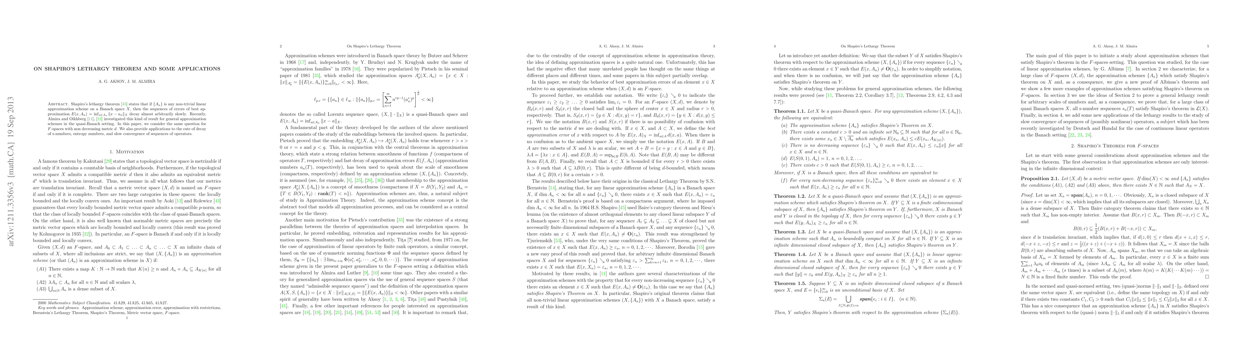 Shapiro's lethargy theorem reveals that non-trivial linear approximation schemes on Banach spaces exhibit slow decay in approximation errors. This paper extends the theorem to F-spaces with non-decreasing metrics and explores applications to the rate of decay of s-numbers, entropy numbers, and the slow convergence of operator sequences.