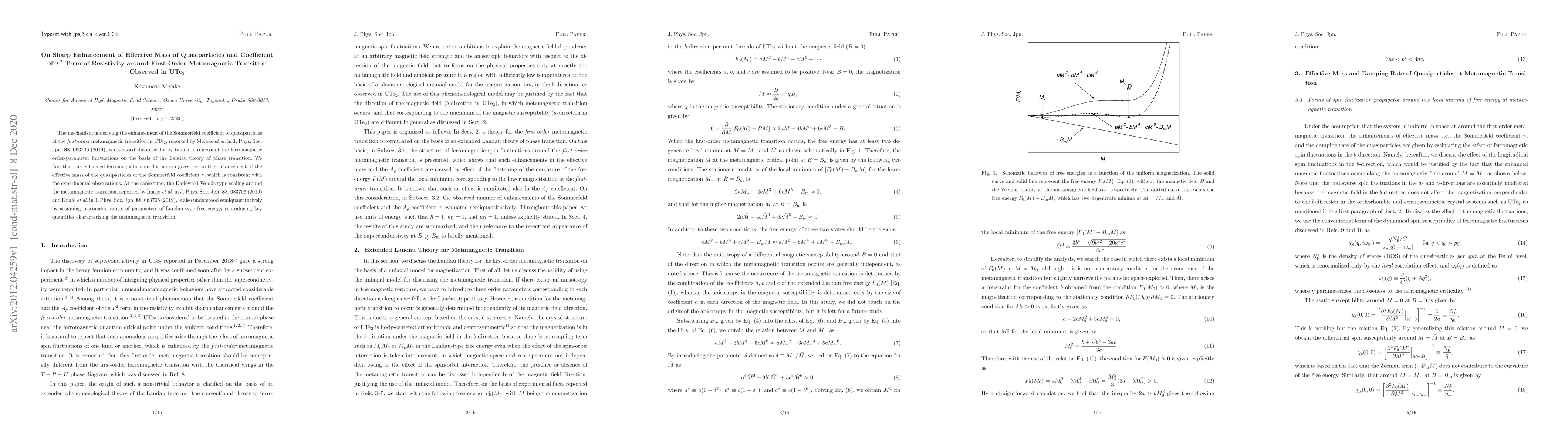 Researchers studied the material UTe_2 to understand its unique properties at the first-order metamagnetic transition, finding that fluctuations in a ferromagnetic order parameter enhance the effective mass of quasiparticles.
