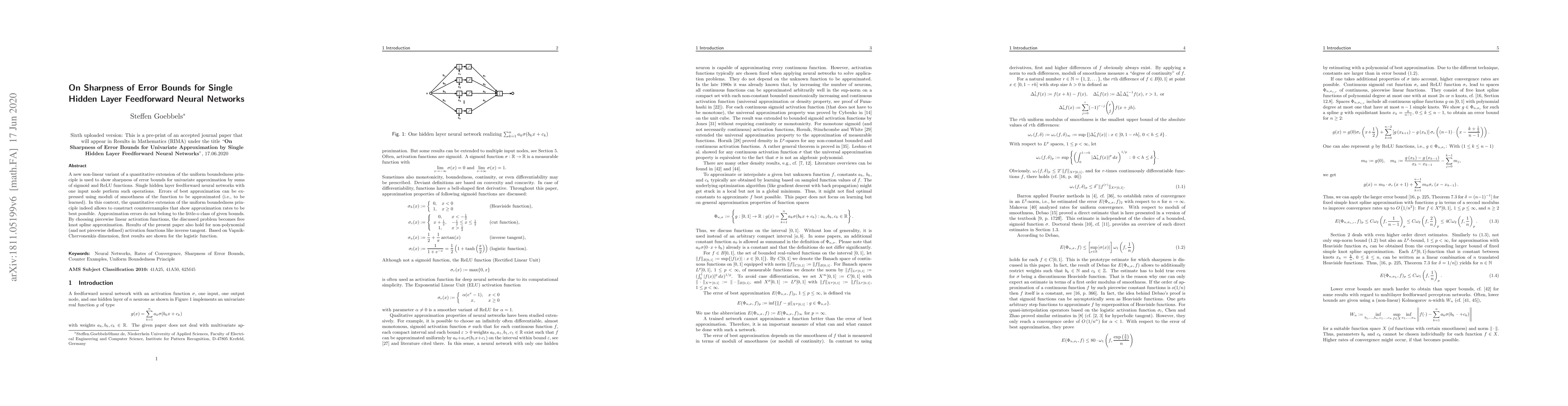 This paper demonstrates the sharpness of error bounds for single hidden layer neural networks using a non-linear variant of the uniform boundedness principle. It shows that approximation rates are optimal and not improvable, even with non-polynomial activation functions like the inverse tangent.