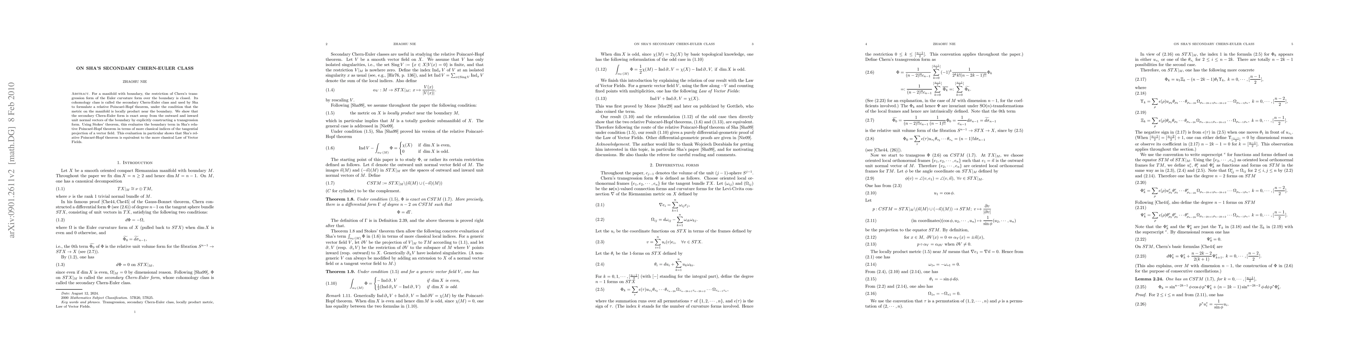 Researchers show that Sha's secondary Chern-Euler form is exact away from boundary unit normals, simplifying his relative Poincaré-Hopf theorem to the classical Law of Vector Fields.