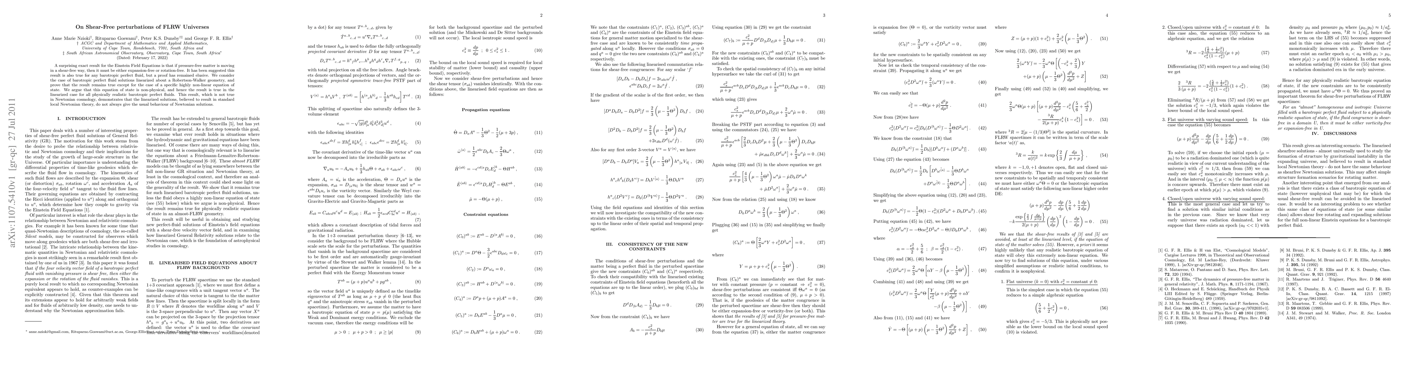 This paper proves that shear-free perturbations of a barotropic perfect fluid in a Robertson-Walker geometry remain expansion-free or rotation-free, except for a non-physical highly non-linear equation of state, thus challenging standard local Newtonian theory.
