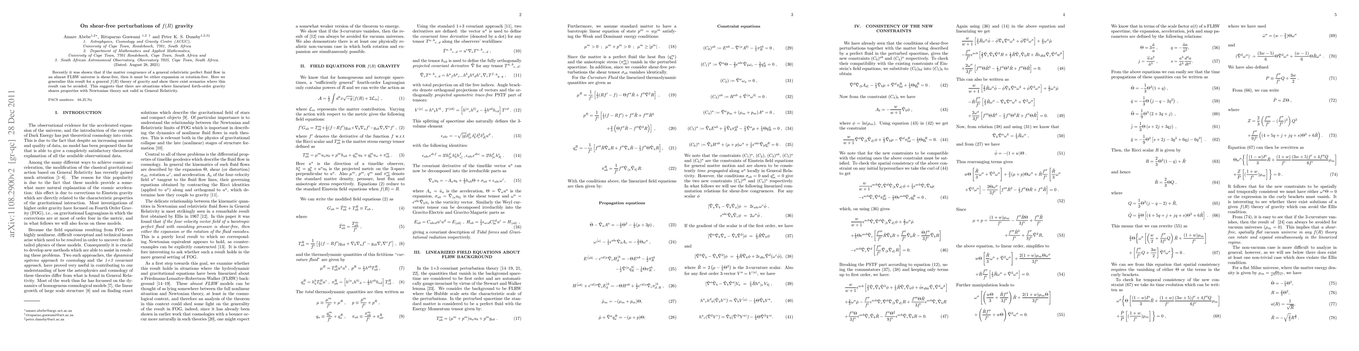Recently it was shown that if the matter congruence of a general relativistic perfect fluid flow in an almost FLRW universe is shear-free, then it must be either expansion or rotation-free. Here we generalize this result for a general f(R) theory of gravity and show there exist scenarios where this result can be avoided. This suggests that there are situations where linearized forth-order gravity shares properties with Newtonian theory not valid in General Relativity.