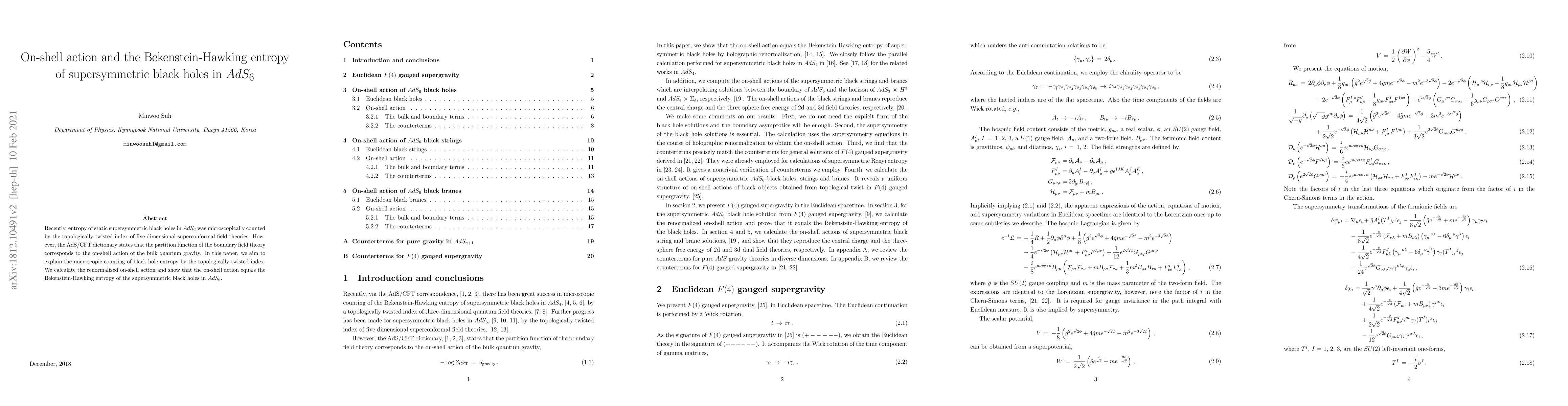 This paper calculates the renormalized on-shell action for supersymmetric black holes in $AdS_6$ and demonstrates that it matches the Bekenstein-Hawking entropy, thereby linking the microscopic counting via the topologically twisted index to the bulk quantum gravity partition function.