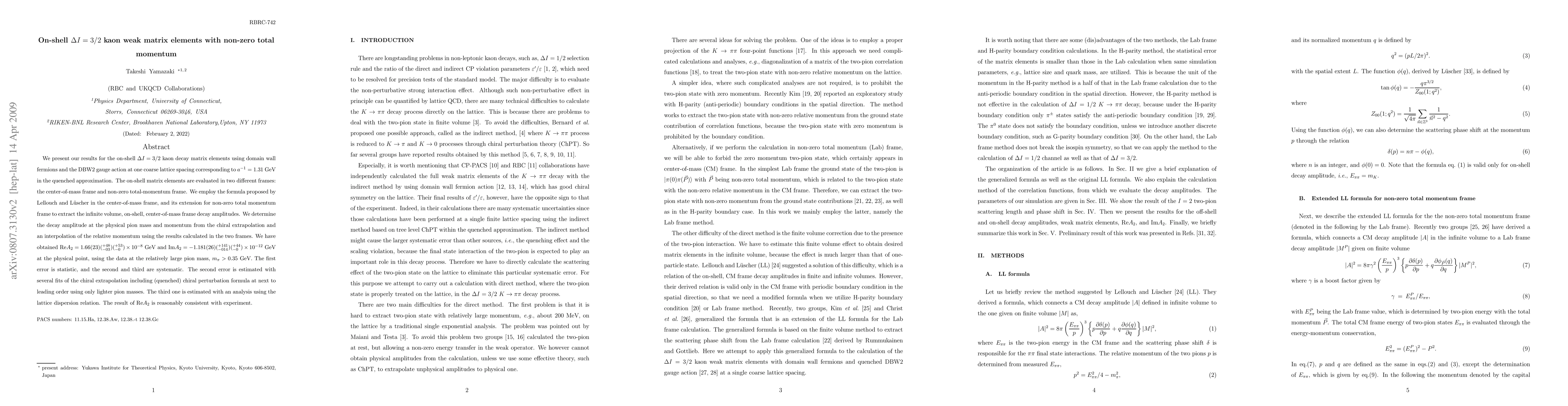 We present our results for the on-shell Delta I = 3/2 kaon decay matrix elements using domain wall fermions and the DBW2 gauge action at one coarse lattice spacing corresponding to 1/a = 1.31 GeV in the quenched approximation. The on-shell matrix elements are evaluated in two different frames: the center-of-mass frame and non-zero total-momentum frame. We employ the formula proposed by Lellouch and L\"uscher in the center-of-mass frame, and its extension for non-zero total momentum frame to extract the infinite volume, on-shell, center-of-mass frame decay amplitudes. We determine the decay amplitude at the physical pion mass and momentum from the chiral extrapolation and an interpolation of the relative momentum using the results calculated in the two frames. We have obtained Re(A_2) = 1.66(23)(^{+48}_{-03})(^{+53}_{-0}) x 10^{-8} GeV and Im(A_2) = -1.181(26)(^{+141}_{-014})(^{+44}_{-0}) x 10^{-12} GeV at the physical point, using the data at the relatively large pion mass, m_pi > 0.35 GeV. The first error is statistic, and the second and third are systematic. The second error is estimated with several fits of the chiral extrapolation including (quenched) chiral perturbation formula at next to leading order using only lighter pion masses. The third one is estimated with an analysis using the lattice dispersion relation. The result of Re(A_2) is reasonably consistent with experiment.