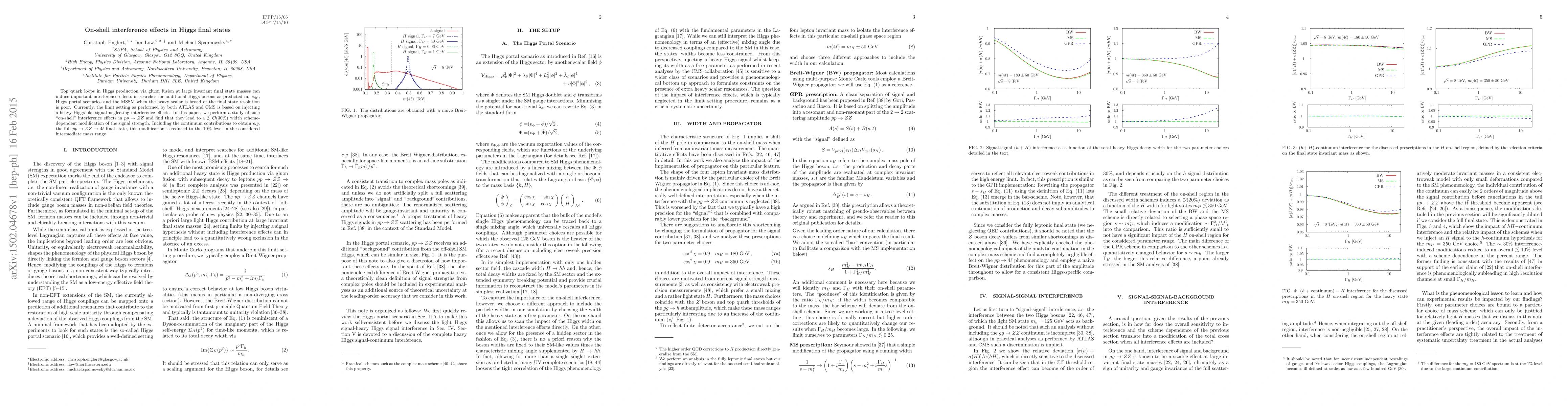 This paper investigates "on-shell" interference effects in Higgs final states from top quark loops in gluon fusion, finding a $\lesssim{\cal{O}}(30%)$ width scheme-dependent modification in signal strength for $pp\to ZZ$ processes, which is reduced to 10% when considering full $pp\to ZZ \to 4\ell$ final states.
