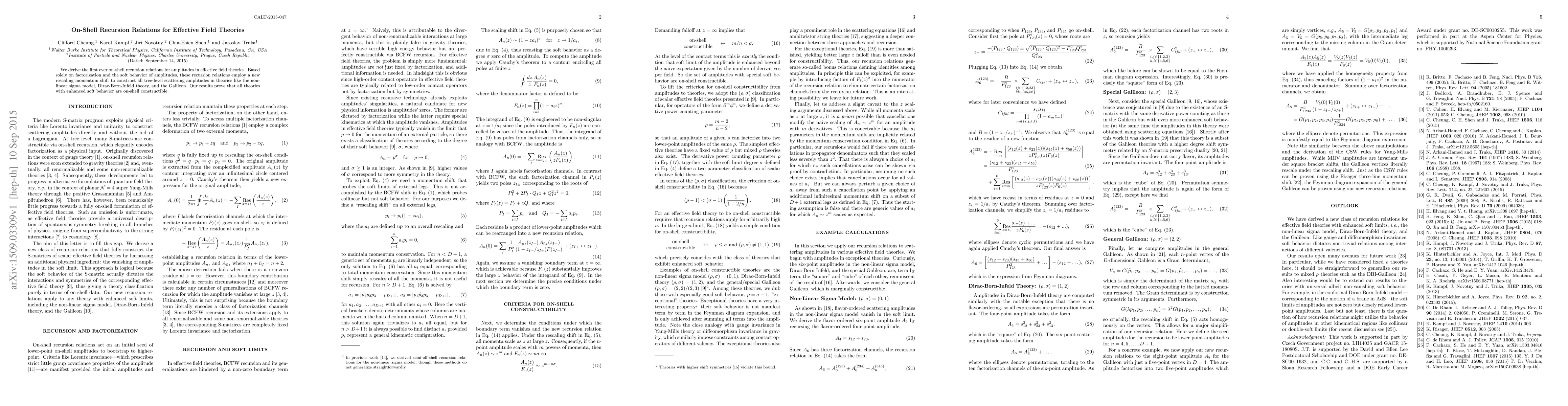 This paper introduces novel on-shell recursion relations for effective field theories, using factorization and soft behavior to construct tree-level scattering amplitudes. These relations demonstrate that all theories with enhanced soft behavior can be constructed on-shell.