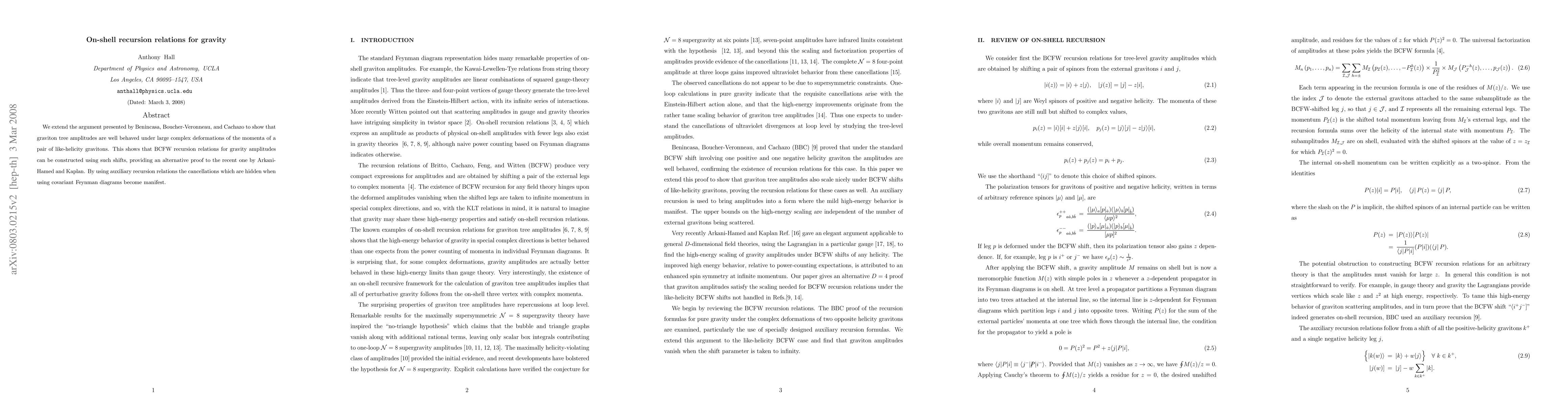 Researchers extend a previous argument to show that graviton tree amplitudes remain well-behaved under large complex deformations of their momenta, enabling the construction of recursion relations for gravity amplitudes.