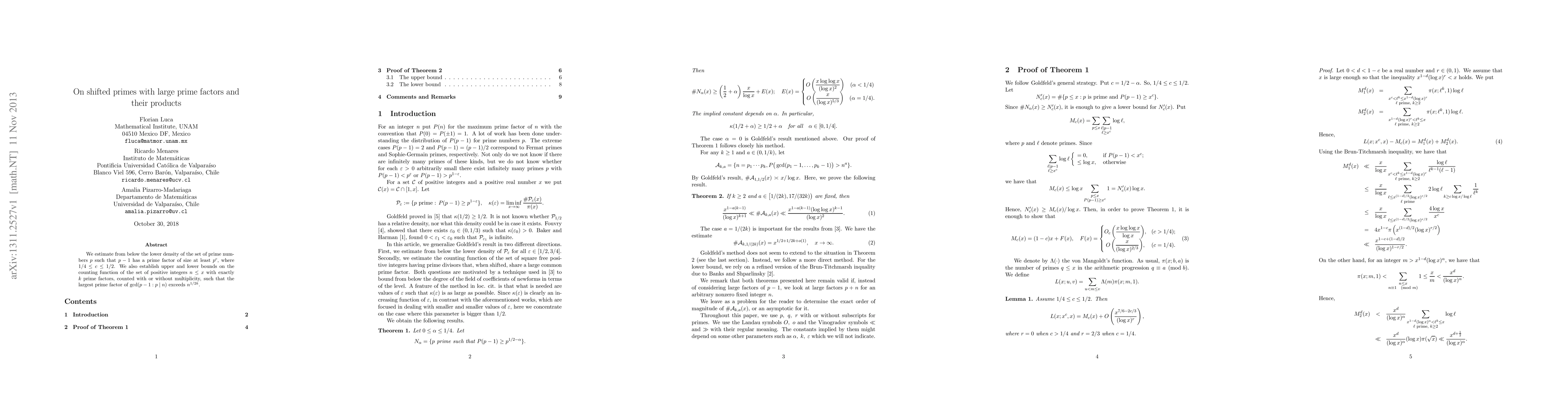 We estimate from below the lower density of the set of prime numbers p such that p-1 has a prime factor of size at least p^c, where c lies in between 1/4 and 1/2. We also establish upper and lower bounds on the counting function of the set of positive integers n up to x with exactly k prime factors, counted with or without multiplicity, such that the largest prime factor of gcd(p-1 : p | n) exceeds n^{1/2k}.