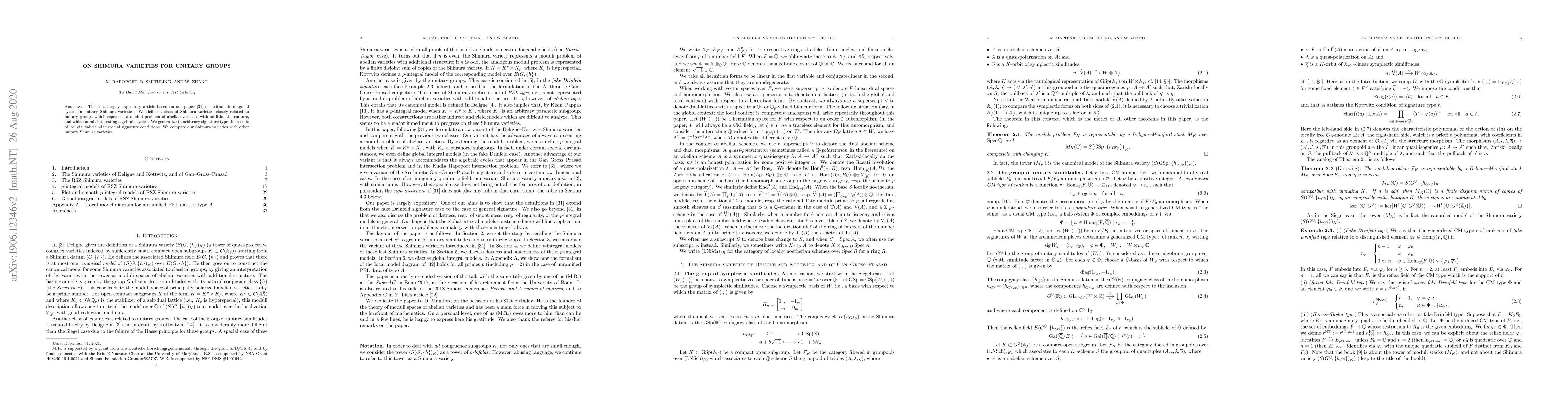 This paper defines Shimura varieties linked to unitary groups, representing moduli for abelian varieties with extra structure and containing significant algebraic cycles. The authors generalize prior results to all signature types and compare their findings with other unitary Shimura varieties.