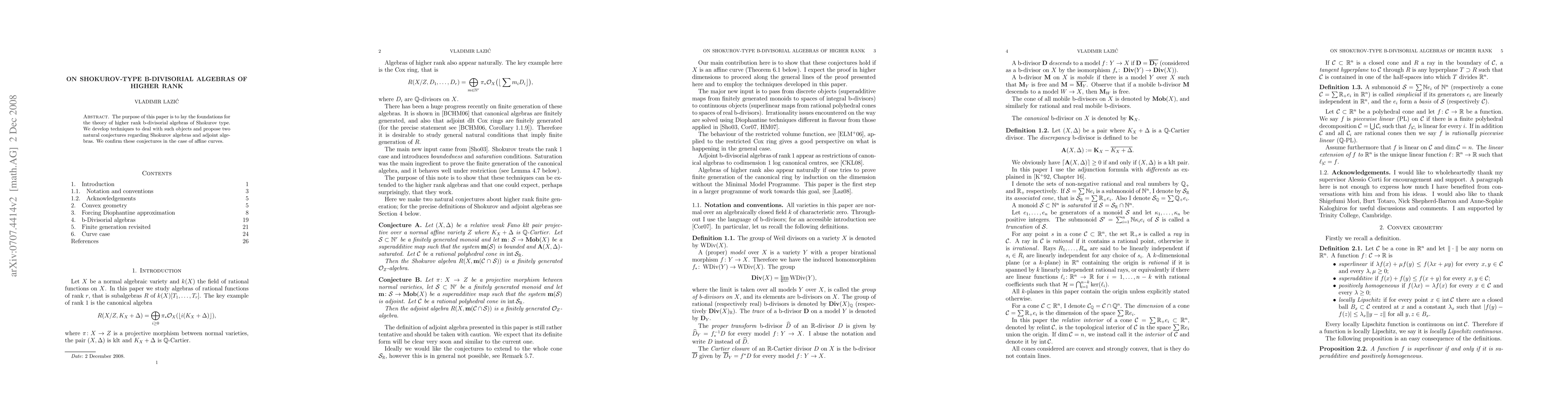 The purpose of this paper is to lay the foundations for the theory of higher rank b-divisorial algebras of Shokurov type. We develop techniques to deal with such objects and propose two natural conjectures regarding Shokurov algebras and adjoint algebras. We confirm these conjectures in the case of affine curves.