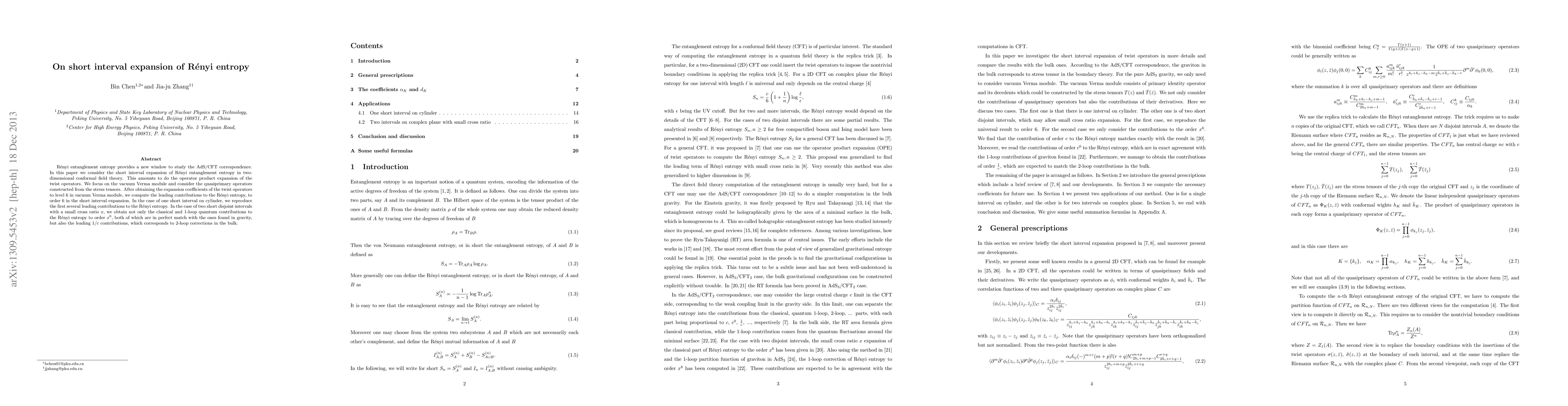 This paper investigates the short interval expansion of Rényi entanglement entropy in two-dimensional conformal field theory, focusing on the vacuum Verma module and quasiprimary operators derived from stress tensors. It computes leading contributions to the Rényi entropy up to order 6, matching results from AdS/CFT correspondence and revealing 2-loop corrections in the bulk.