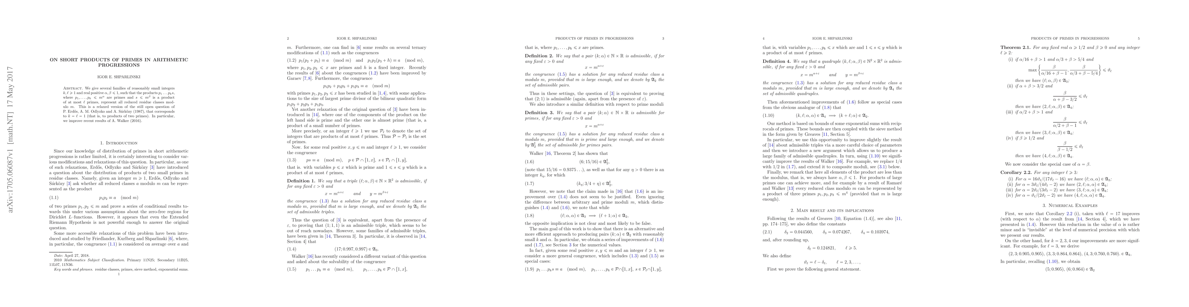 We give several families of reasonably small integers $k, \ell \ge 1$ and real positive $\alpha, \beta \le 1$, such that the products $p_1\ldots p_k s$, where $p_1, \ldots, p_k \le m^\alpha$ are primes and $s \le m^\beta$ is a product of at most $\ell$ primes, represent all reduced residue classes modulo $m$. This is a relaxed version of the still open question of P. Erdos, A. M. Odlyzko and A. Sarkozy (1987), that corresponds to $k = \ell =1$ (that is, to products of two primes). In particular, we improve recent results of A. Walker (2016).