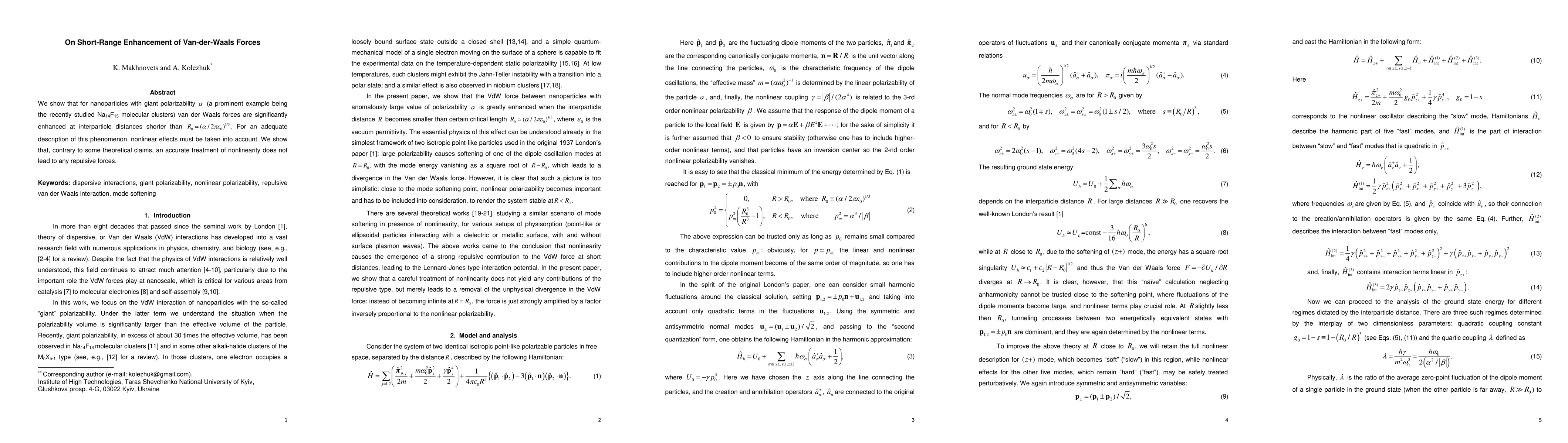 This paper demonstrates that van der Waals forces are greatly enhanced for nanoparticles with high polarizability at short interparticle distances, requiring a nonlinear treatment for accurate description. Contrary to some theories, this enhanced interaction does not result in repulsive forces.