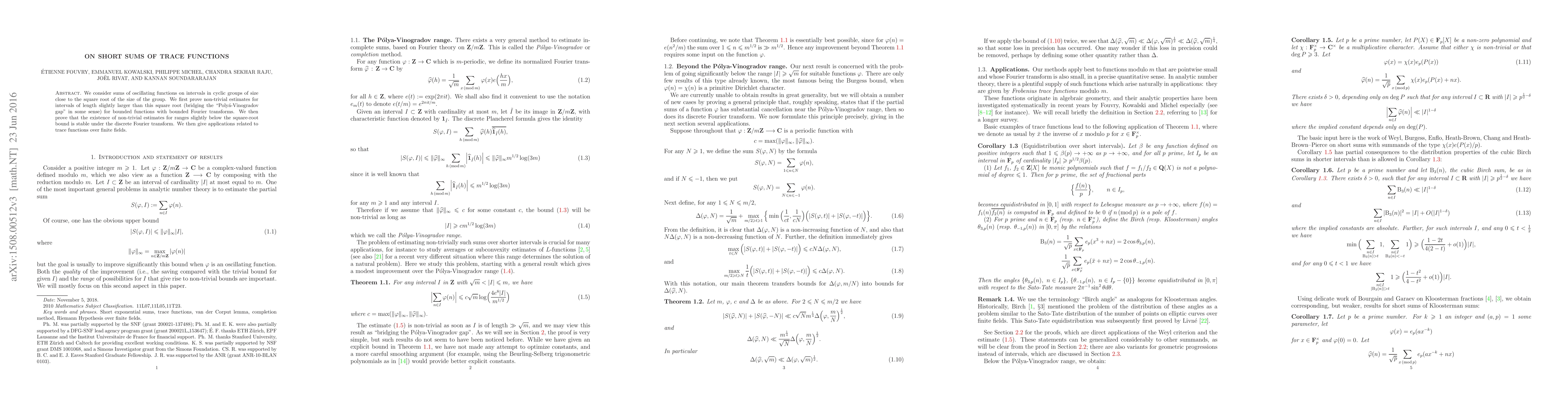 We consider sums of oscillating functions on intervals in cyclic groups of size close to the square root of the size of the group. We first prove non-trivial estimates for intervals of length slightly larger than this square root (bridging the "Poly\'a-Vinogradov gap" in some sense) for bounded functions with bounded Fourier transforms. We then prove that the existence of non-trivial estimates for ranges slightly below the square-root bound is stable under the discrete Fourier transform, and we give applications related to trace functions over finite fields.