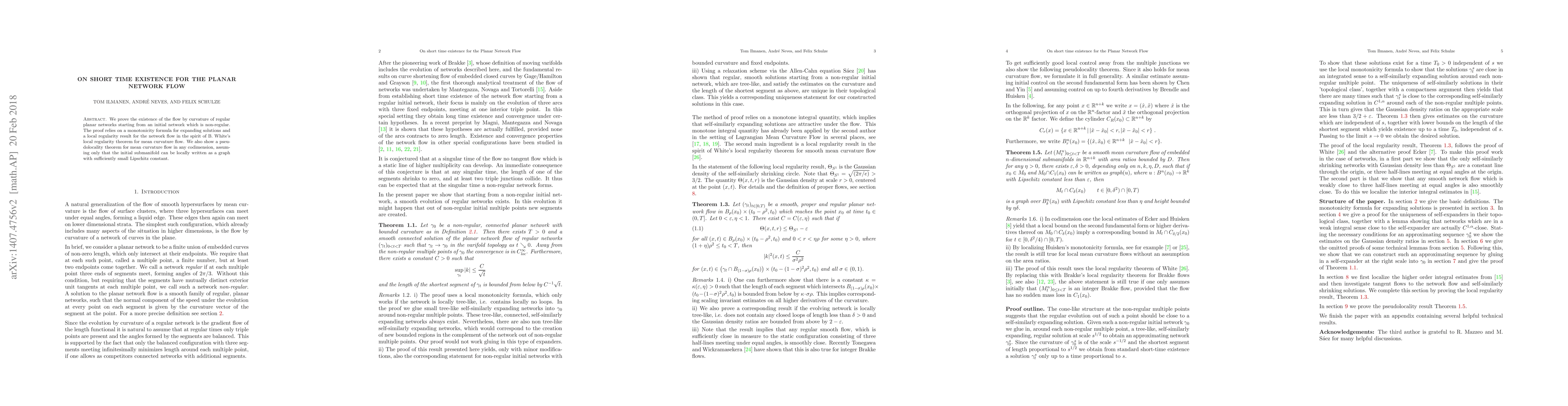 We prove the existence of the flow by curvature of regular planar networks starting from an initial network which is non-regular. The proof relies on a monotonicity formula for expanding solutions and a local regularity result for the network flow in the spirit of B. White's local regularity theorem for mean curvature flow. We also show a pseudolocality theorem for mean curvature flow in any codimension, assuming only that the initial submanifold can be locally written as a graph with sufficiently small Lipschitz constant.