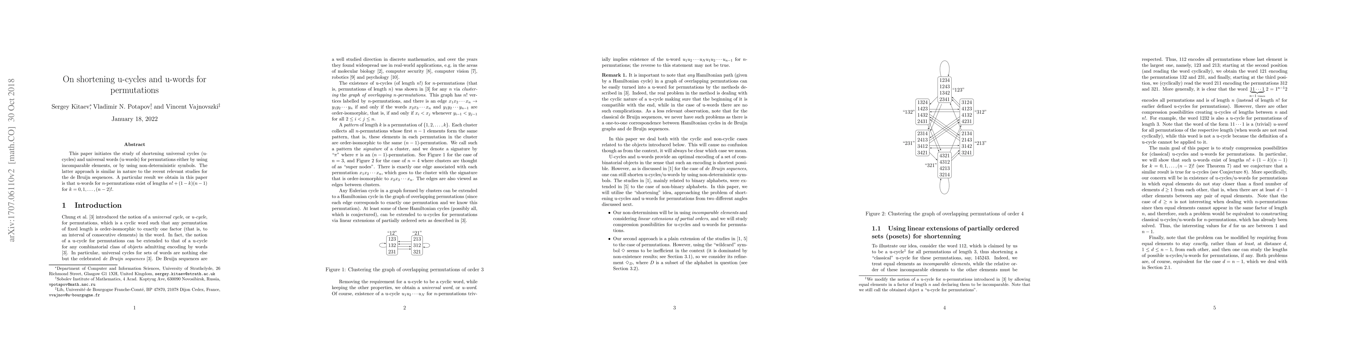 This paper explores methods to shorten universal cycles (u-cycles) and words (u-words) for permutations through incomparable elements or non-deterministic symbols, finding that u-words for $n$-permutations exist at lengths $n!+(1-k)(n-1)$ for $k=0,1,\ldots,(n-2)!$.