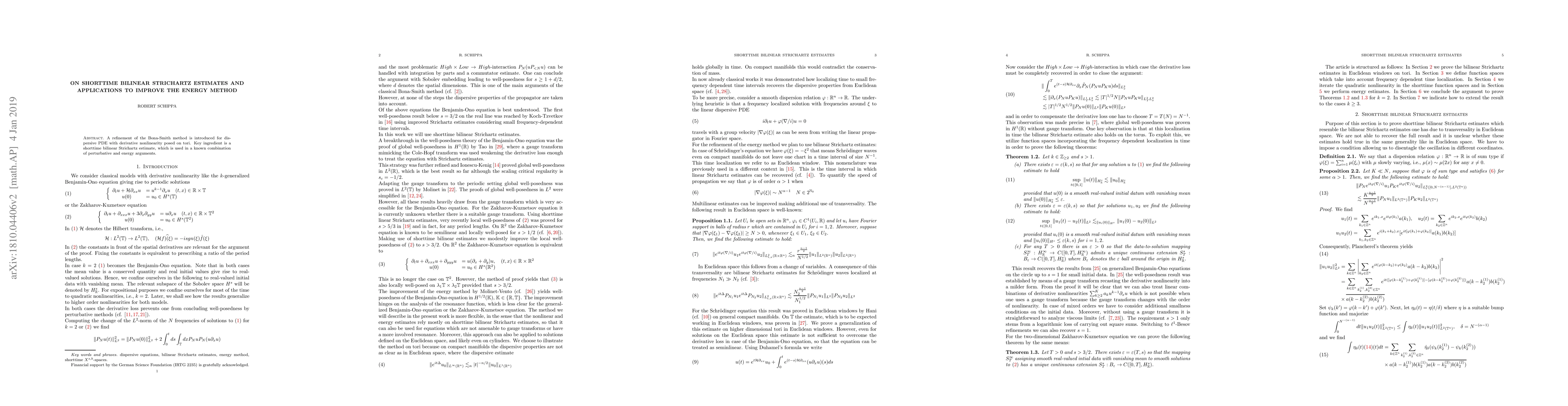 A refinement of the energy method is introduced for dispersive PDE with derivative nonlinearity posed on tori. Key ingredient is a shorttime bilinear Strichartz estimate, which is used in a known combination of perturbative and energy arguments.