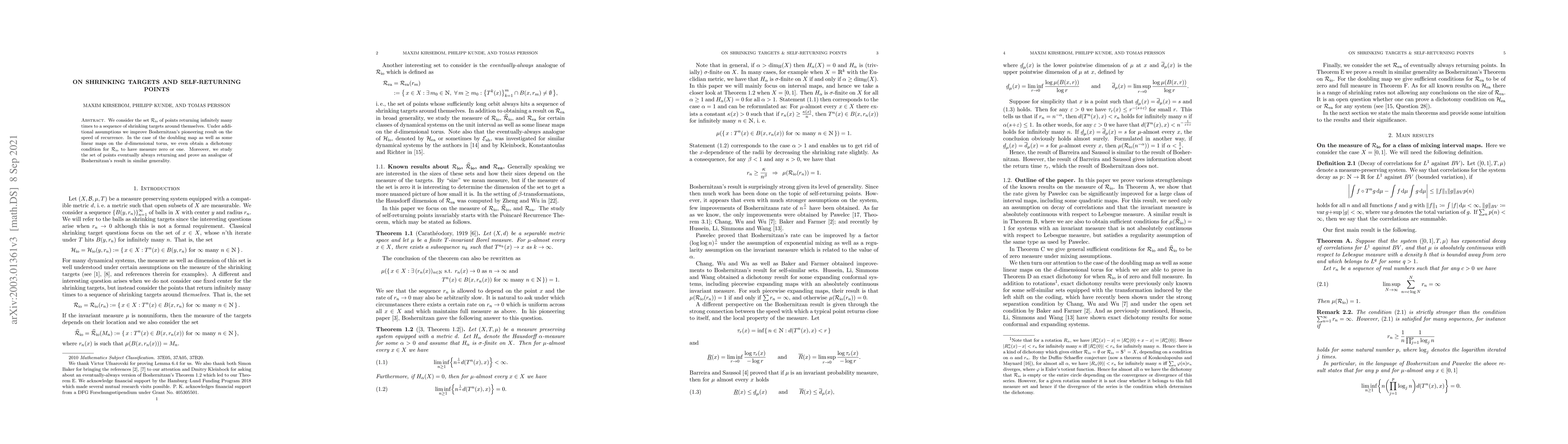This paper investigates the set of points that return infinitely often to a sequence of shrinking targets, improving Boshernitzan's recurrence speed results. It establishes a dichotomy condition for these points under certain maps, showing that their measure can be either zero or one.