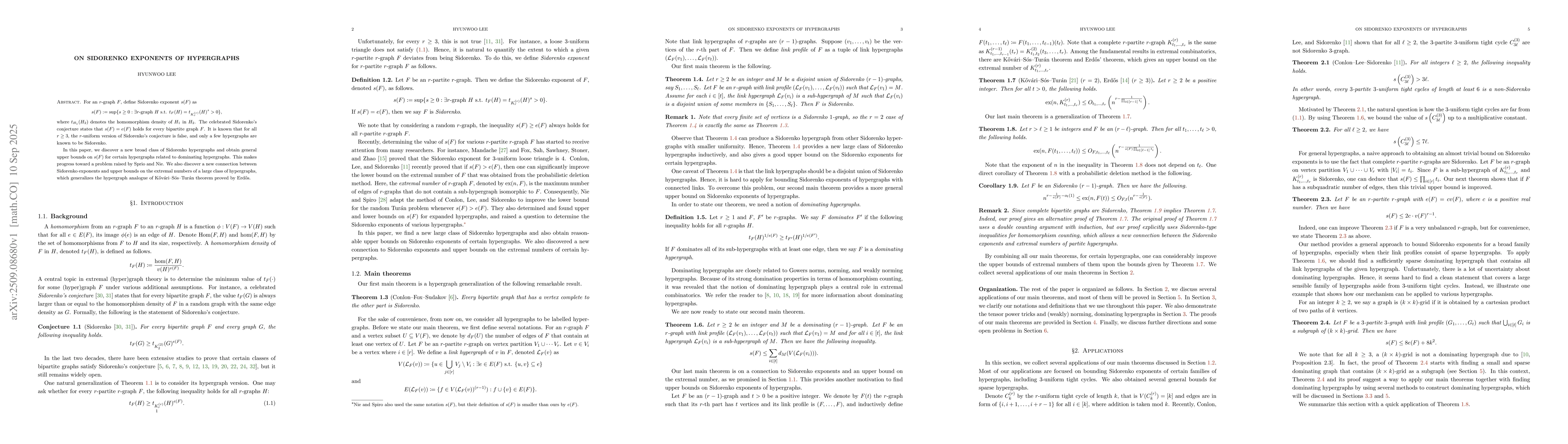 For an $r$-graph $F$, define Sidorenko exponent $s(F)$ as $$s(F):= \sup \{s \geq 0: \exists \text{$r$-graph $H$ s.t. } t_F(H) = t_{K^{(r)}_r} (H)^s > 0\},$$ where $t_{H_1}(H_2)$ denotes the homomorphism density of $H_1$ in $H_2$. The celebrated Sidorenko's conjecture states that $s(F) = e(F)$ holds for every bipartite graph $F$. It is known that for all $r \geq 3$, the $r$-uniform version of Sidorenko's conjecture is false, and only a few hypergraphs are known to be Sidorenko. In this paper, we discover a new broad class of Sidorenko hypergraphs and obtain general upper bounds on $s(F)$ for certain hypergraphs related to dominating hypergraphs. This makes progress toward a problem raised by Sprio and Nie. We also discover a new connection between Sidorenko exponents and upper bounds on the extremal numbers of a large class of hypergraphs, which generalizes the hypergraph analogue of K\H{o}v\'{a}ri--S\'{o}s--Tur\'{a}n theorem proved by Erd\H{o}s.