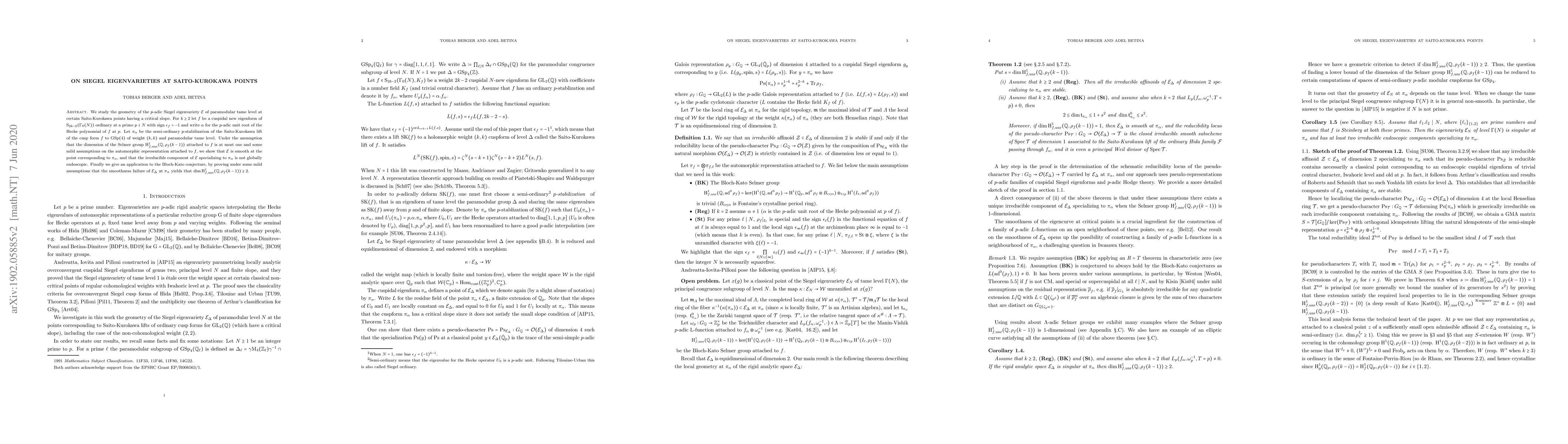 This research paper investigates the $p$-adic Siegel eigenvariety $mathcal{E}$ at Saito-Kurokawa points with critical slope. It proves under certain conditions that $mathcal{E}$ is smooth at the point corresponding to a specific $p$-stabilized lift $pi_alpha$. The study also shows that the irreducible component specializing to $pi_alpha$ is non-endoscopic. As an application, it demonstrates that under mild assumptions, the smoothness failure of $mathcal{E}$ at $pi_alpha$ implies a lower bound for the dimension of a Selmer group, which has implications for the Bloch-Kato conjecture.