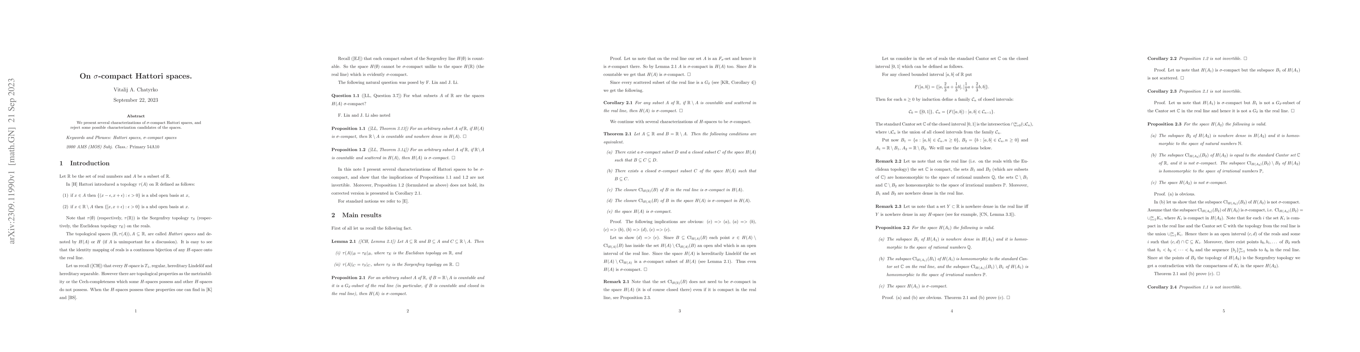 Summary: This paper provides detailed characterizations of $\sigma$-compact Hattori spaces, while also identifying and dismissing several incorrect potential characterizations.