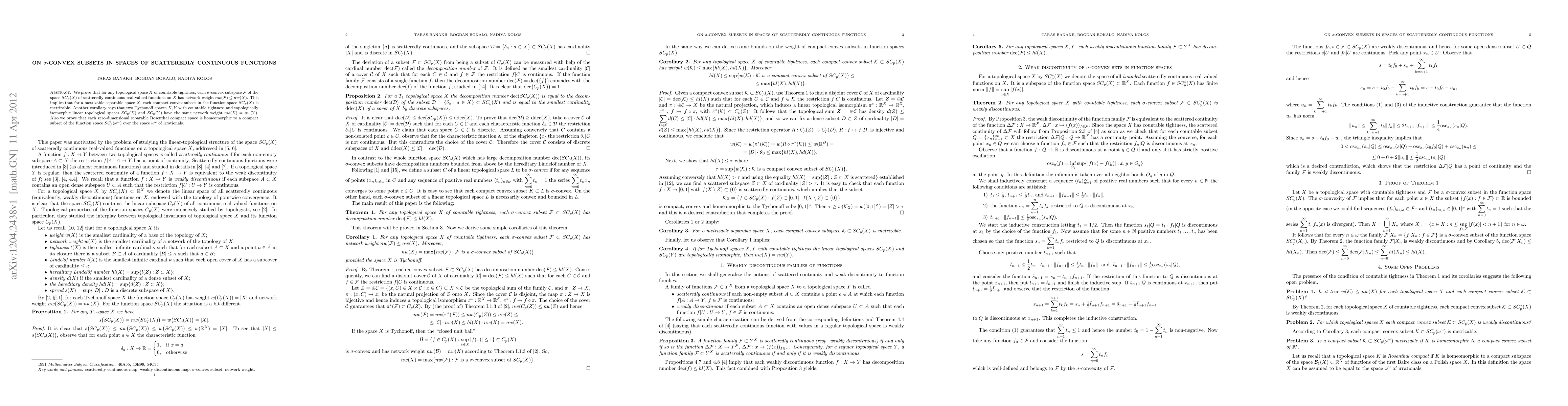 Researchers prove that χ-convex subsets in spaces of scatteredly continuous functions have limited network weight compared to the original space, with implications for metrizable separability and topological isomorphism.
