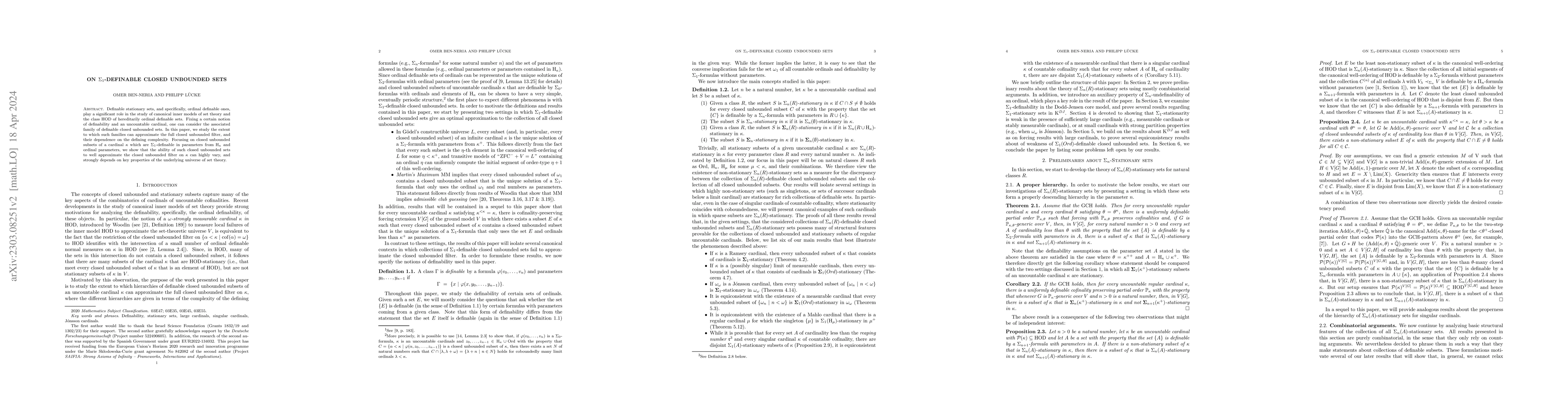 This paper investigates $\Sigma_1$-definable closed unbounded sets within a given universe of set theory, examining their approximation capabilities of the full closed unbounded filter on a cardinal $\kappa$. It finds that the approximation ability varies significantly based on the complexity of the definition and underlying set-theoretic properties.