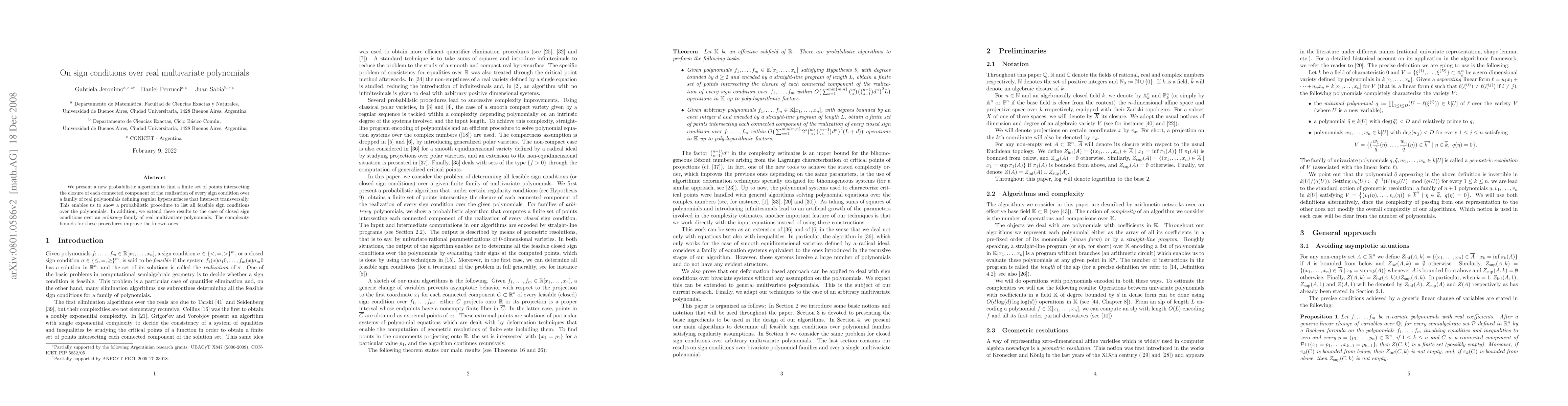 Researchers developed a new algorithm to find points where sign conditions over real polynomials intersect, enabling a probabilistic method to list all feasible sign conditions. This breakthrough improves complexity bounds for procedures in this field.