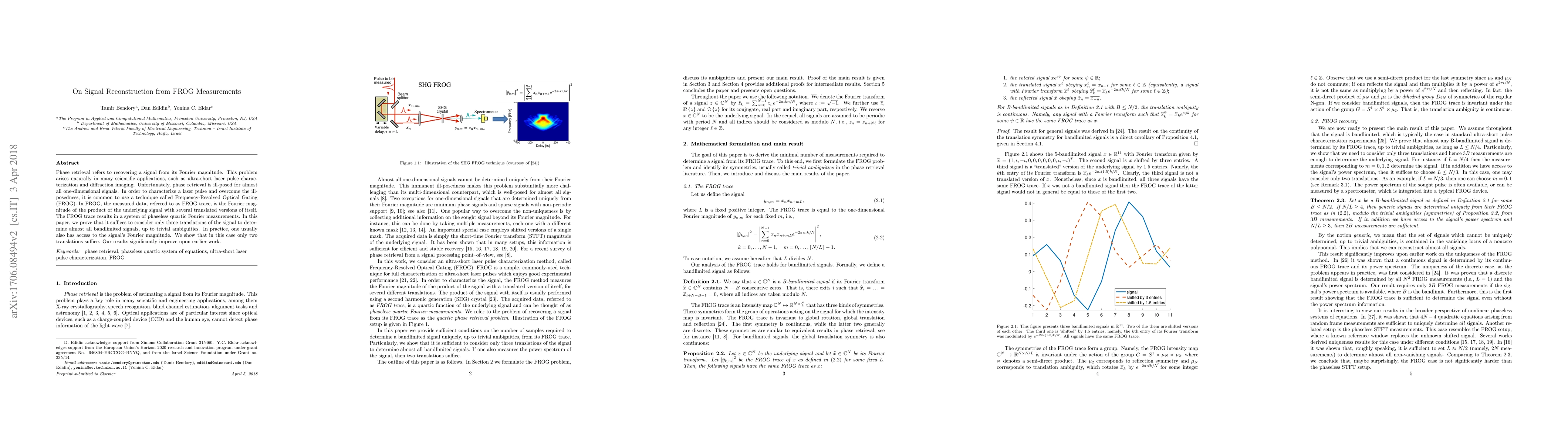 Researchers prove that only a few translations of a signal's FROG measurements can uniquely determine its phase; they show two translations suffice when the Fourier magnitude is also available.