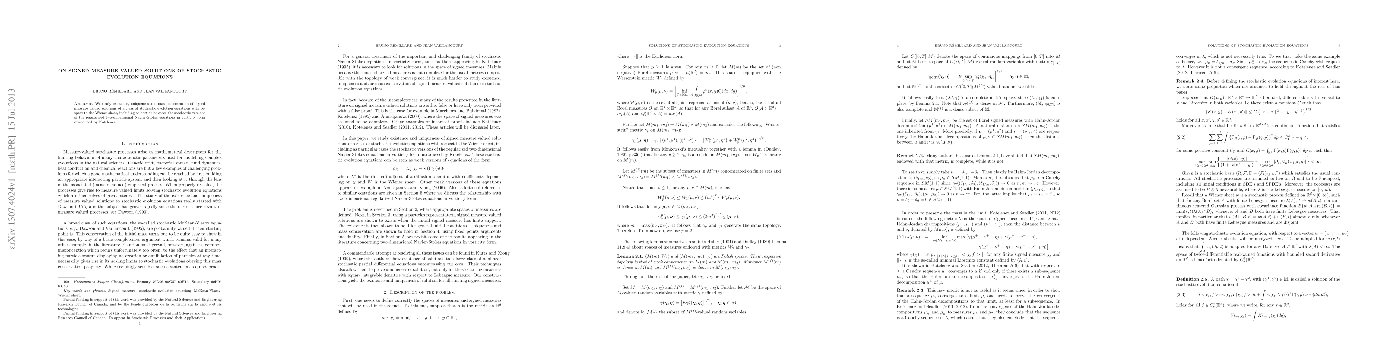 This paper investigates the existence, uniqueness, and mass conservation properties of signed measure valued solutions for a class of stochastic evolution equations driven by the Wiener sheet, with a focus on the stochastic versions of the regularized two-dimensional Navier-Stokes equations in vorticity form.