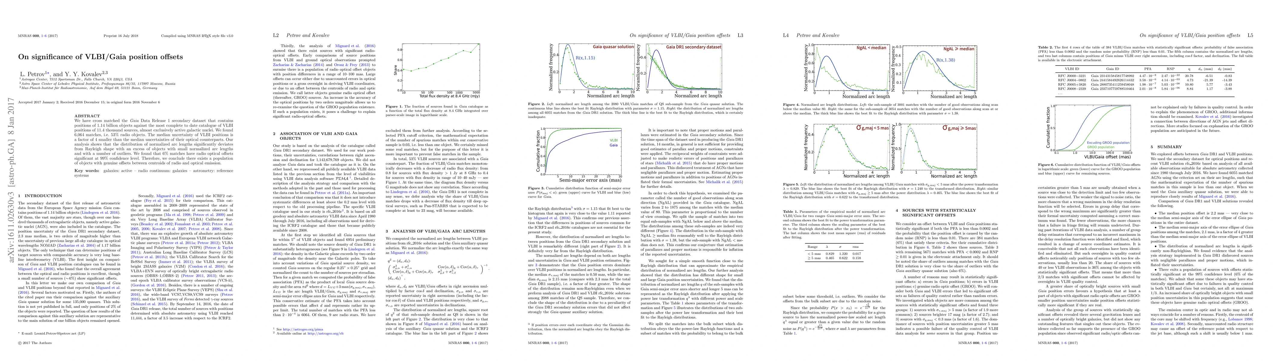 This study cross-matched Gaia Data Release 1 secondary dataset with a VLBI catalogue, finding 53% matches and revealing genuine offsets between radio and optical centroids in 6% of cases, indicating significant discrepancies in positional data.
