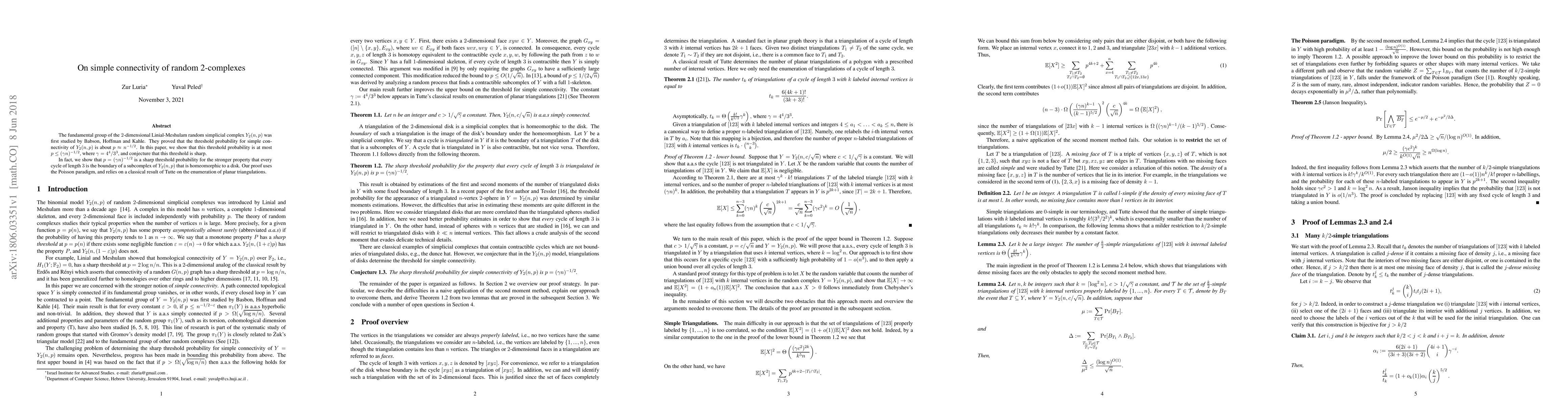 This paper refines the threshold probability for simple connectivity of a random 2-complex, showing that it is at most $p ightarrow (rac{4^4}{3^3})n^{-1/2}$, and conjectures this is sharp.