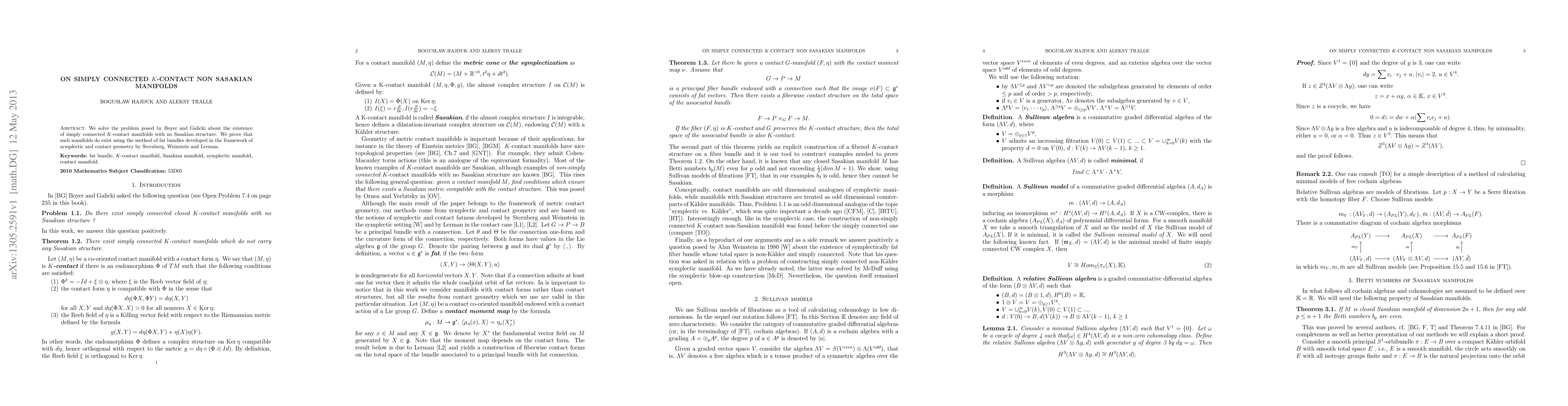 Summary: The paper resolves Boyer and Galicki's query on the existence of K-contact, simply connected manifolds without Sasakian structure, utilizing methods from contact and symplectic geometry, specifically the technique of fat bundles. The findings are grounded in metric contact geometry.