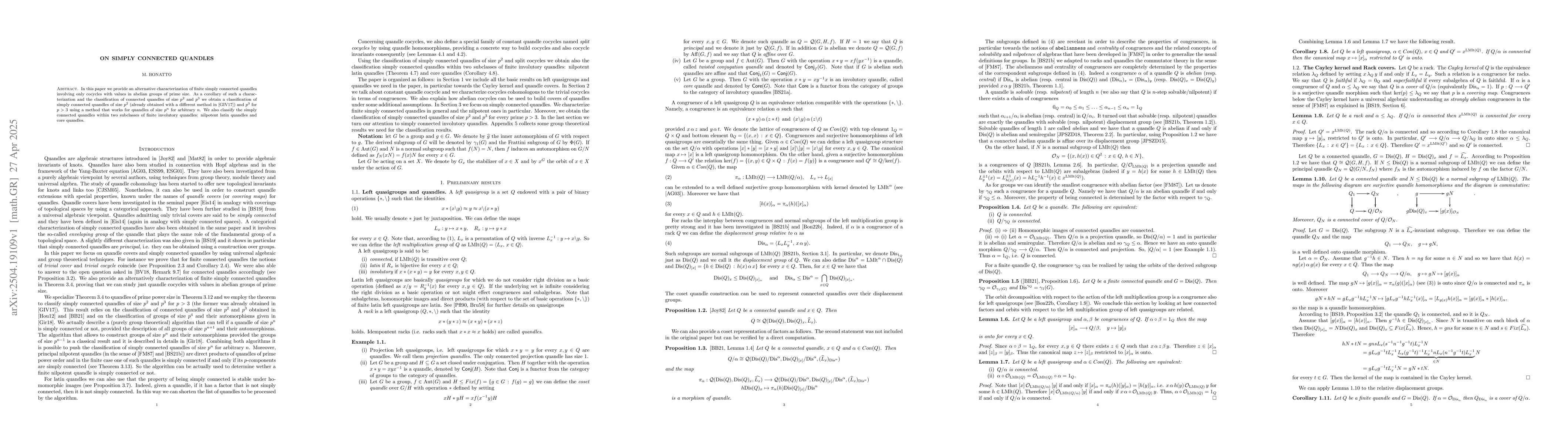 Researchers classify simply connected quandles of size $p^2$ and $p^3$, and sub-classify involutory quandles into nilpotent latin and core categories.