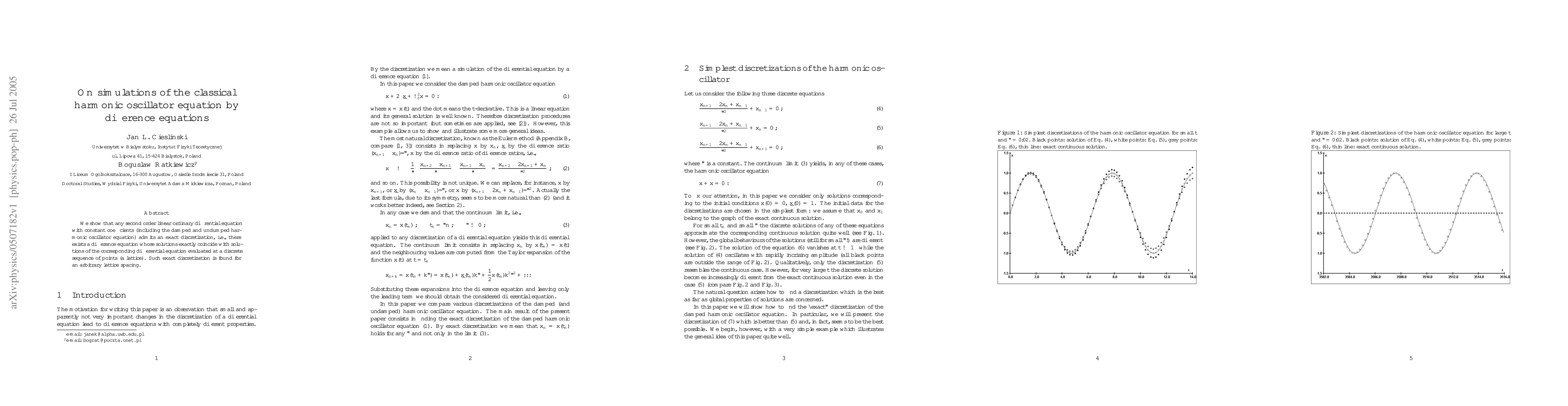 Researchers have found that any second-order linear ordinary differential equation can be exactly discretized into a difference equation, allowing for precise simulations of the harmonic oscillator equation at discrete points on a lattice.