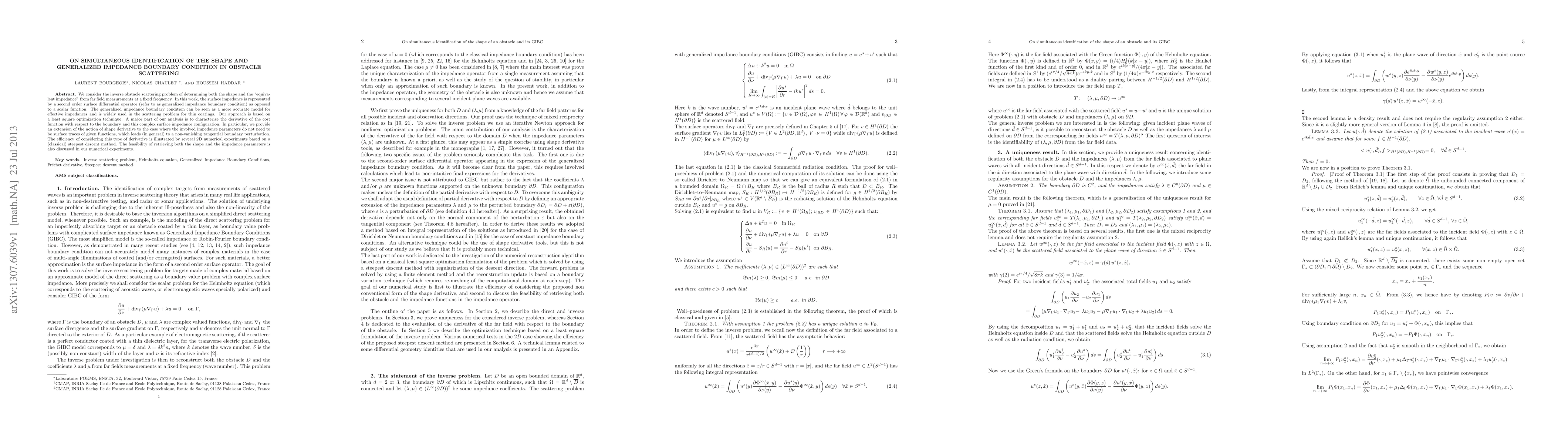 The research employs a least-squares optimization technique to simultaneously identify the shape and generalized impedance boundary condition (GIBC) in obstacle scattering problems. It extends the shape derivative concept to handle complex surface impedance configurations, which generally result in non-vanishing tangential boundary perturbations.