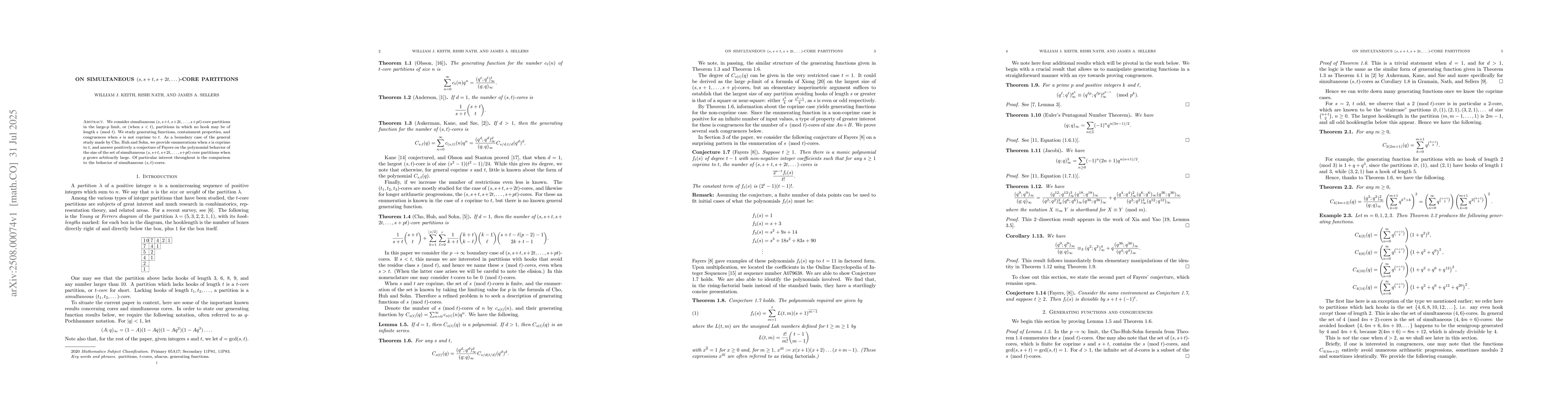 We consider simultaneous $(s,s+t,s+2t,\dots,s+pt)$-core partitions in the