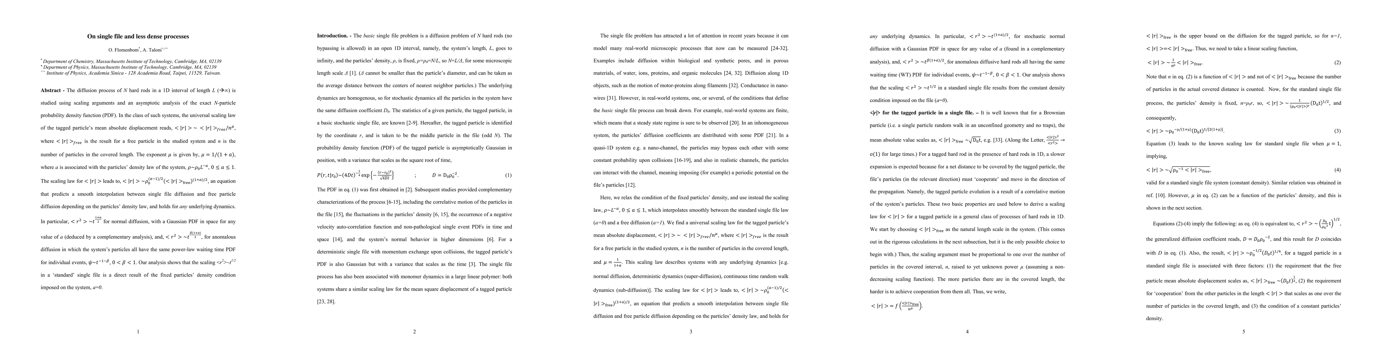 equation that predicts a smooth interpolation between single file diffusion and