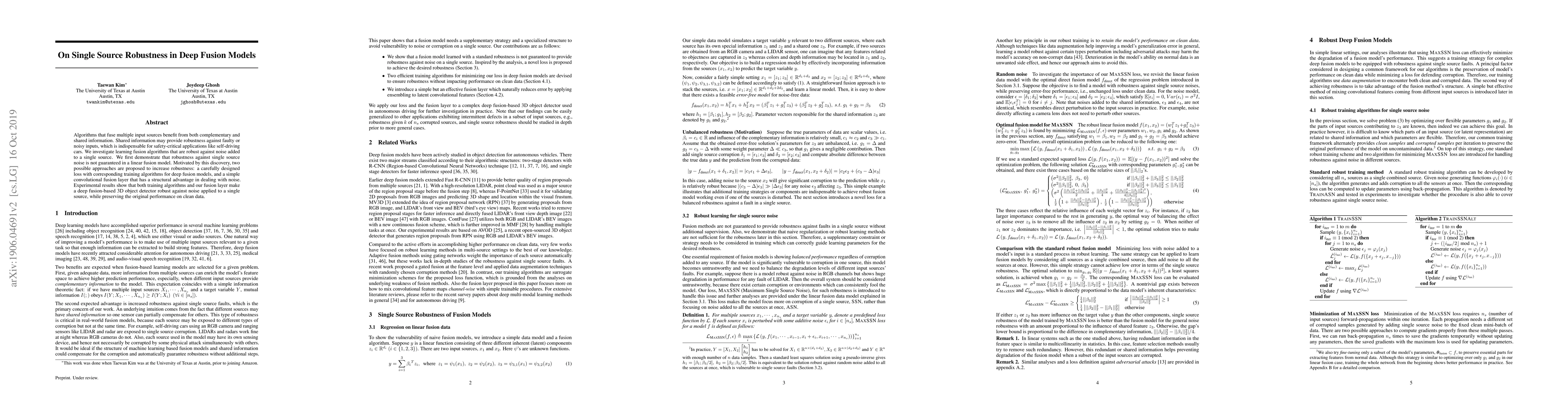 Researchers investigate how to make deep fusion models more robust against noise in a single input source, with promising results from new training algorithms and convolutional fusion layers.