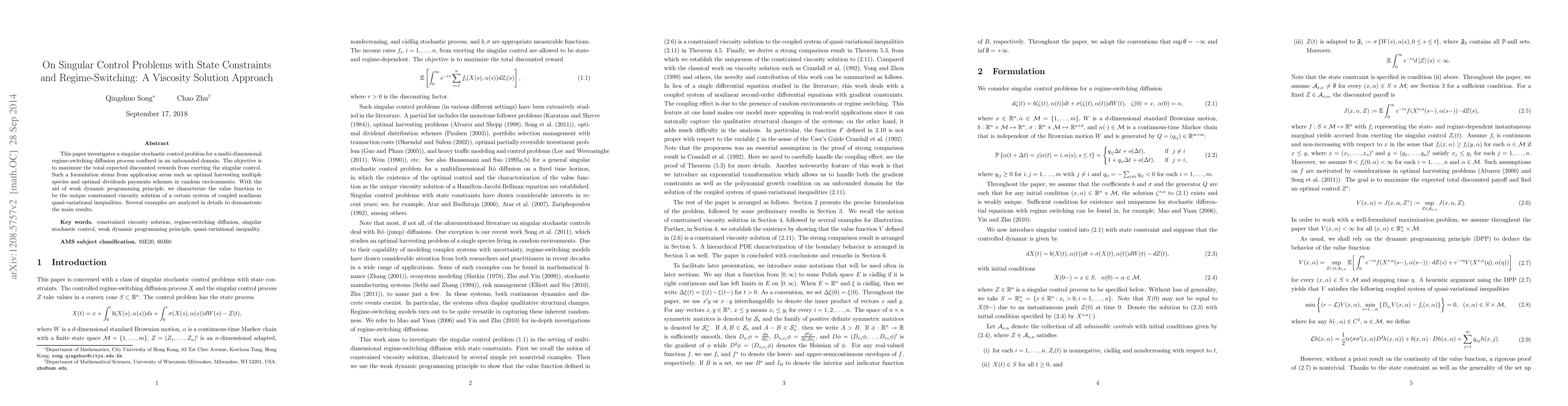 This paper solves a complex control problem for a regime-switching process with state constraints, using a novel approach that combines weak dynamic programming and quasi-variational inequalities to find the optimal solution.