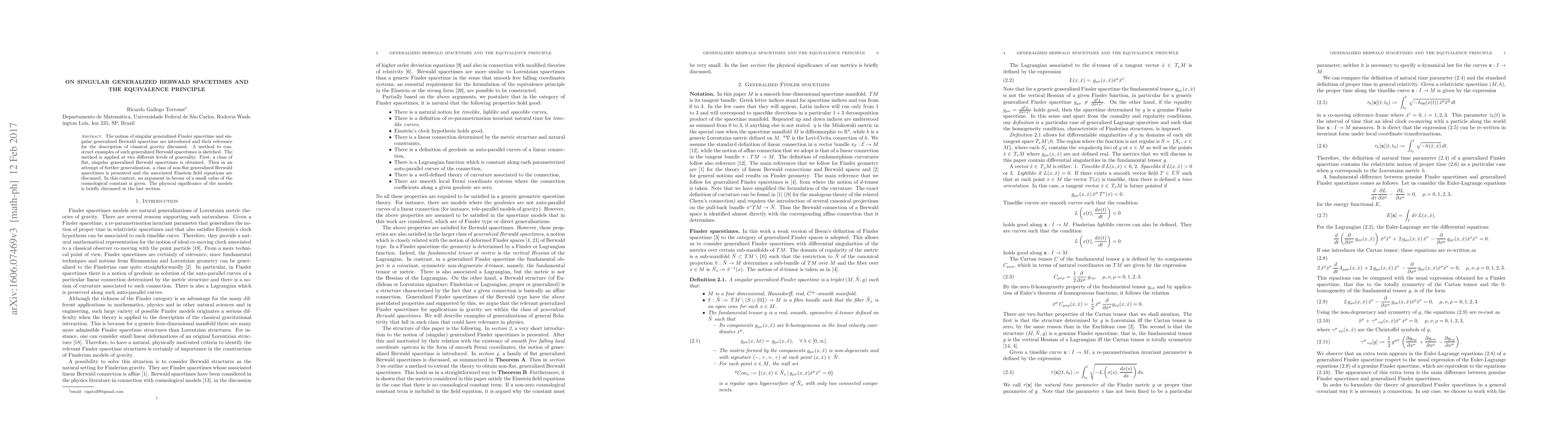This paper introduces singular generalized Berwald spacetimes and discusses their relevance for classical gravity. The authors propose methods to construct both flat and non-flat examples, analyze their Einstein field equations, and argue for a small cosmological constant, concluding with a brief discussion on the physical significance.