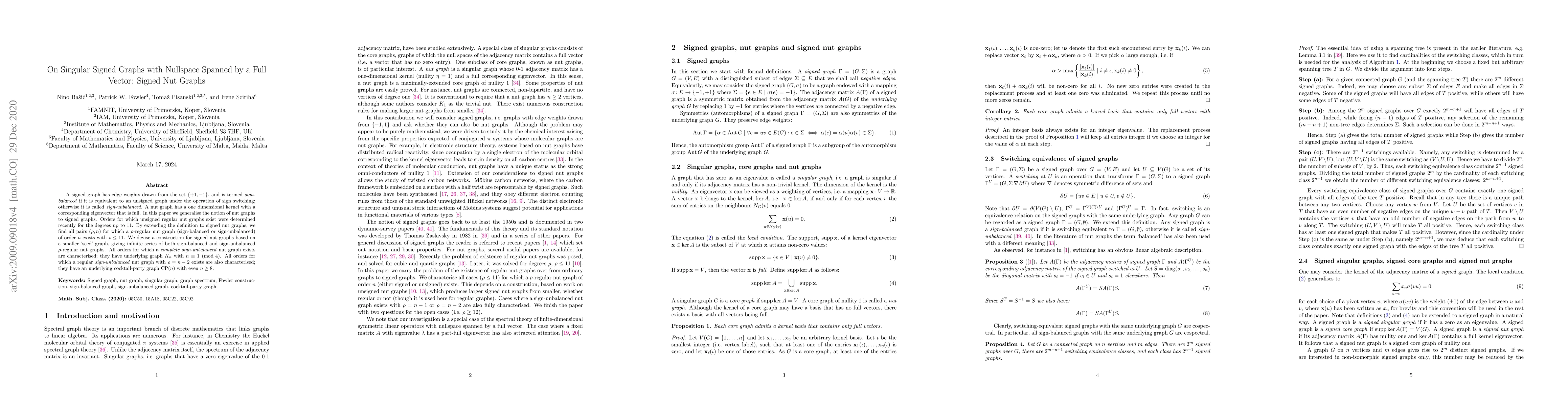 A signed graph has edge weights drawn from the set $\{+1,-1\}$, and is termed sign-balanced if it is equivalent to an unsigned graph under the operation of sign switching; otherwise it is called sign-unbalanced. A nut graph has a one dimensional kernel with a corresponding eigenvector that is full. In this paper we generalise the notion of nut graphs to signed graphs. Orders for which unsigned regular nut graphs exist were determined recently for the degrees up to $11$. By extending the definition to signed nut graphs, we find all pairs $(\rho, n)$ for which a $\rho$-regular nut graph (sign-balanced or sign-unbalanced) of order $n$ exists with $\rho \le 11$. We devise a construction for signed nut graphs based on a smaller `seed' graph, giving infinite series of both sign-balanced and sign-unbalanced $\rho$-regular nut graphs. All orders for which a complete sign-unbalanced nut graph exists are characterised; they have underlying graph $K_n$ with $n \equiv 1 \pmod 4$. All orders for which a regular sign-unbalanced nut graph with $\rho = n - 2$ exists are also characterised; they have an underlying cocktail-party graph $\mathrm{CP}(n)$ with even $n \geq 8$.
