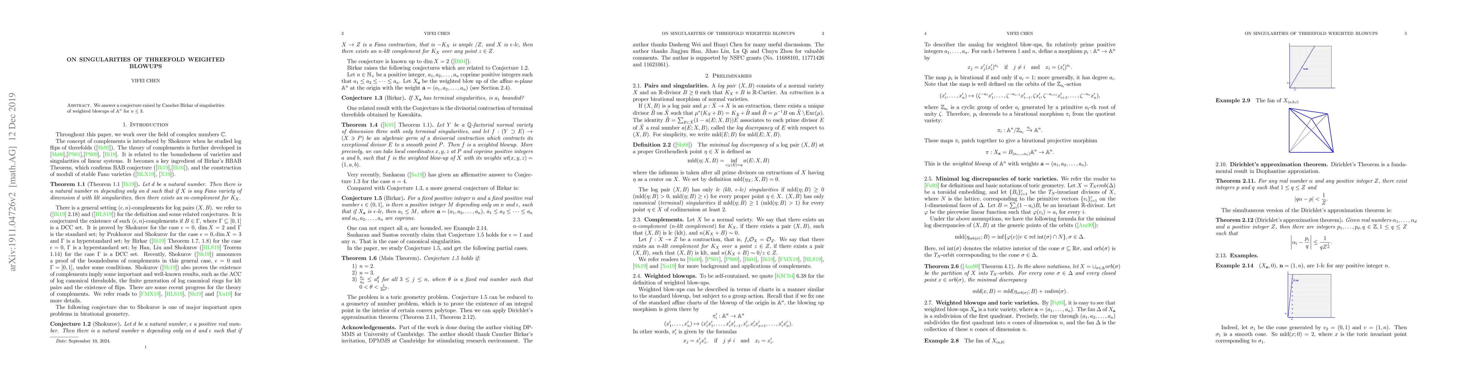 We answer a question raised by Caucher Birkar for singularities of weighted blowups of $\mathbb{A}^n$, if $n\leq 3$.