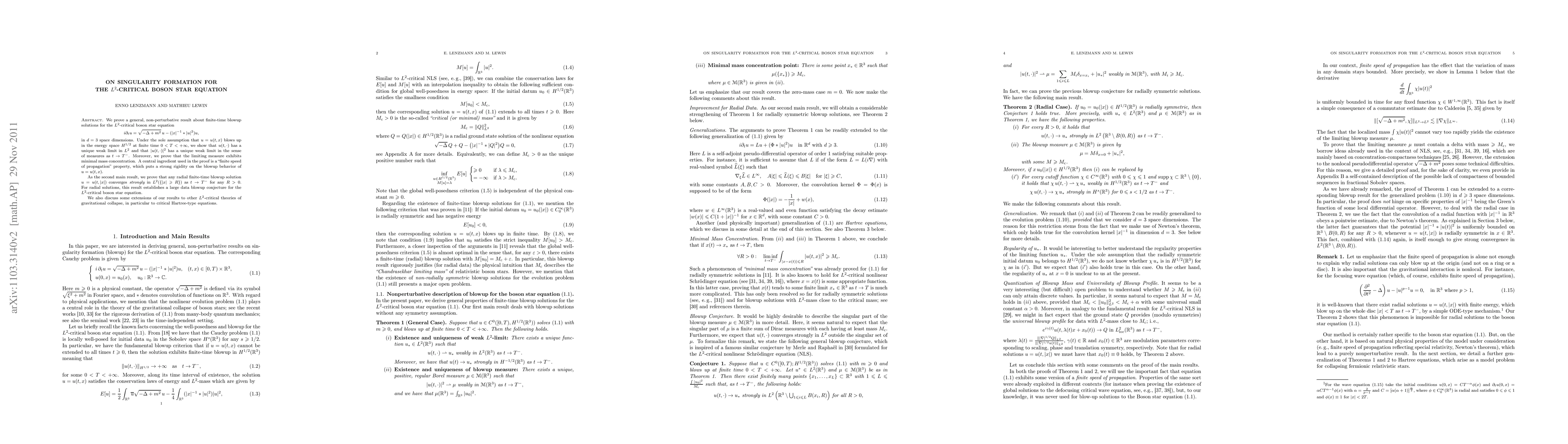 This paper proves the formation of singularity for the $L^2$-critical boson star equation, showing that finite-time blowup solutions exhibit unique weak limits and minimal mass concentration. It also establishes a large data blowup conjecture for radial solutions and discusses extensions to other $L^2$-critical gravitational collapse theories.
