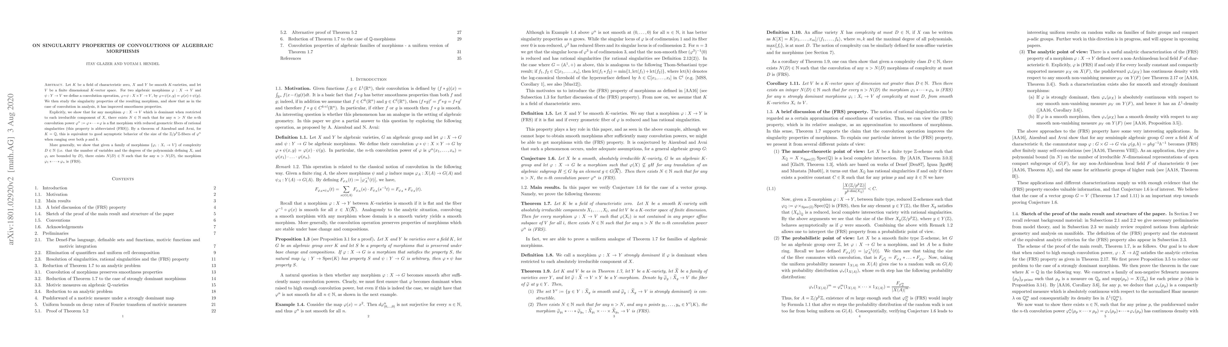 Let $K$ be a field of characteristic zero, $X$ and $Y$ be smooth $K$-varieties, and let $V$ be a finite dimensional $K$-vector space. For two algebraic morphisms $\varphi:X\rightarrow V$ and $\psi:Y\rightarrow V$ we define a convolution operation, $\varphi*\psi:X\times Y\to V$, by $\varphi*\psi(x,y)=\varphi(x)+\psi(y)$. We then study the singularity properties of the resulting morphism, and show that as in the case of convolution in analysis, it has improved smoothness properties. Explicitly, we show that for any morphism $\varphi:X\rightarrow V$ which is dominant when restricted to each irreducible component of $X$, there exists $N\in\mathbb{N}$ such that for any $n>N$ the $n$-th convolution power $\varphi^{n}:=\varphi*\dots*\varphi$ is a flat morphism with reduced geometric fibers of rational singularities (this property is abbreviated (FRS)). By a theorem of Aizenbud and Avni, for $K=\mathbb{Q}$, this is equivalent to good asymptotic behavior of the size of the $\mathbb{Z}/p^{k}\mathbb{Z}$-fibers of $\varphi^{n}$ when ranging over both $p$ and $k$. More generally, we show that given a family of morphisms $\{\varphi_{i}:X_{i}\rightarrow V\}$ of complexity $D\in\mathbb{N}$ (i.e. that the number of variables and the degrees of the polynomials defining $X_{i}$ and $\varphi_{i}$ are bounded by $D$), there exists $N(D)\in\mathbb{N}$ such that for any $n>N(D)$, the morphism $\varphi_{1}*\dots*\varphi_{n}$ is (FRS).