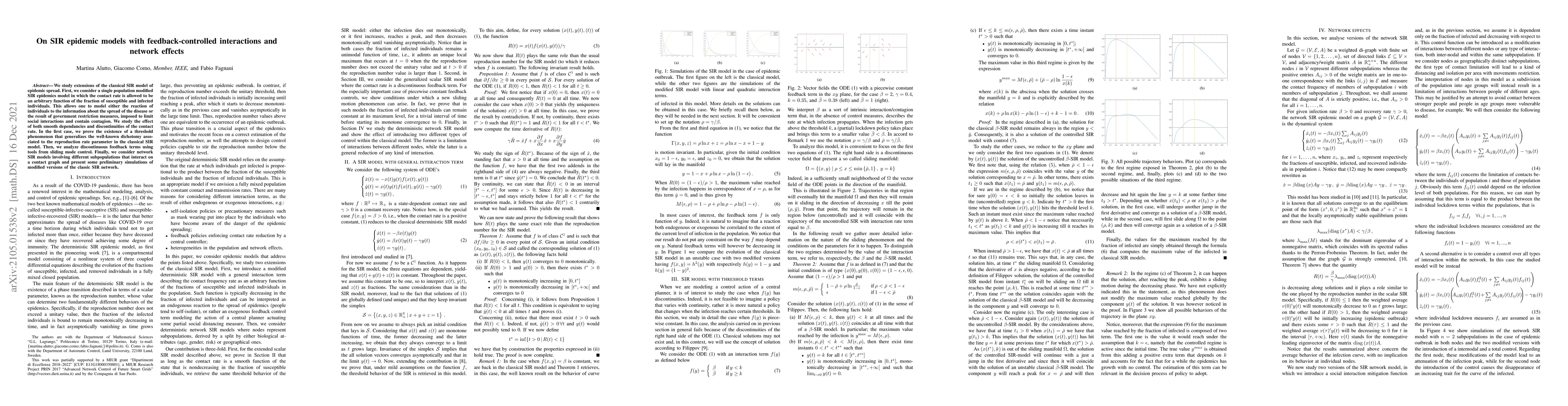 This paper extends the classical SIR epidemic model by incorporating feedback-controlled contact rates and network effects. It explores threshold phenomena in modified SIR models and applies sliding mode control to discontinuous feedback terms, while also introducing network SIR models for different interacting subpopulations.