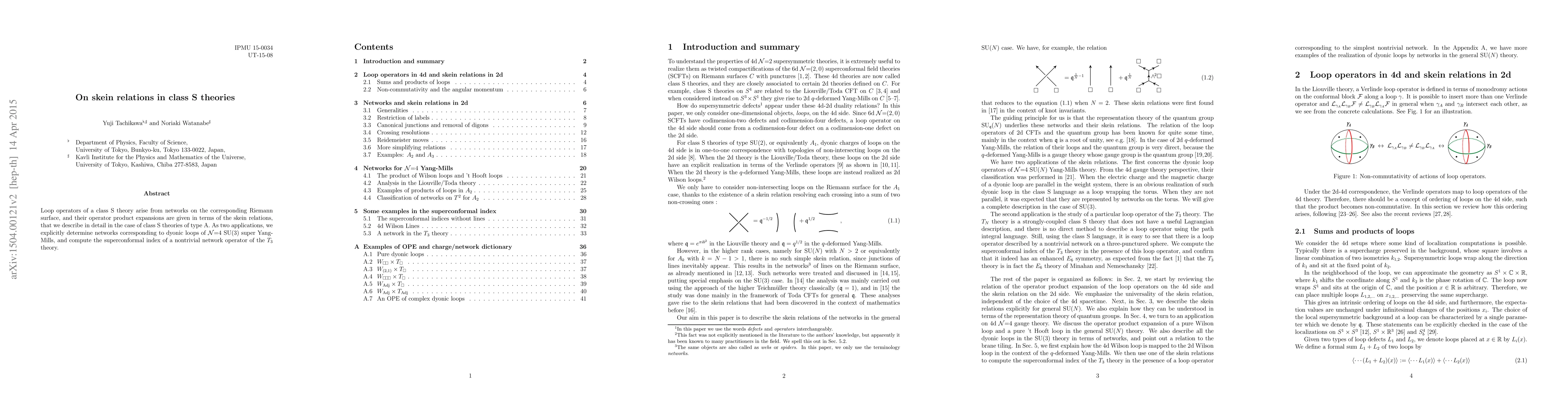 The paper provides detailed skein relations and their applications in class S theories, offering a comprehensive framework for understanding loop operators and their operator product expansions.