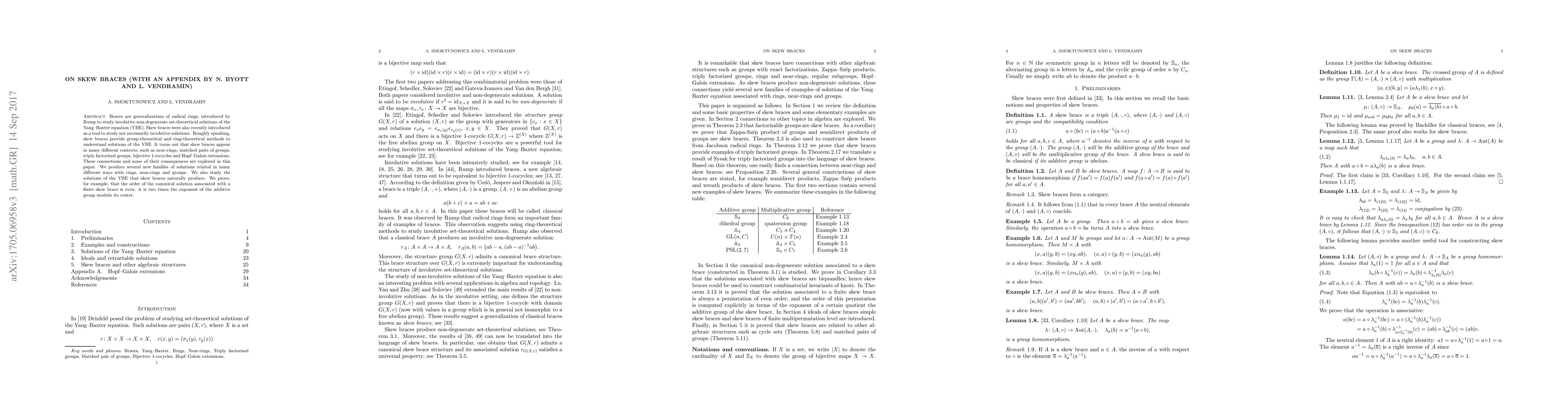 Braces are generalizations of radical rings, introduced by Rump to study involutive non-degenerate set-theoretical solutions of the Yang-Baxter equation (YBE). Skew braces were also recently introduced as a tool to study not necessarily involutive solutions. Roughly speaking, skew braces provide group-theoretical and ring-theoretical methods to understand solutions of the YBE. It turns out that skew braces appear in many different contexts, such as near-rings, matched pairs of groups, triply factorized groups, bijective 1-cocycles and Hopf-Galois extensions. These connections and some of their consequences are explored in this paper. We produce several new families of solutions related in many different ways with rings, near-rings and groups. We also study the solutions of the YBE that skew braces naturally produce. We prove, for example, that the order of the canonical solution associated with a finite skew brace is even: it is two times the exponent of the additive group modulo its center.