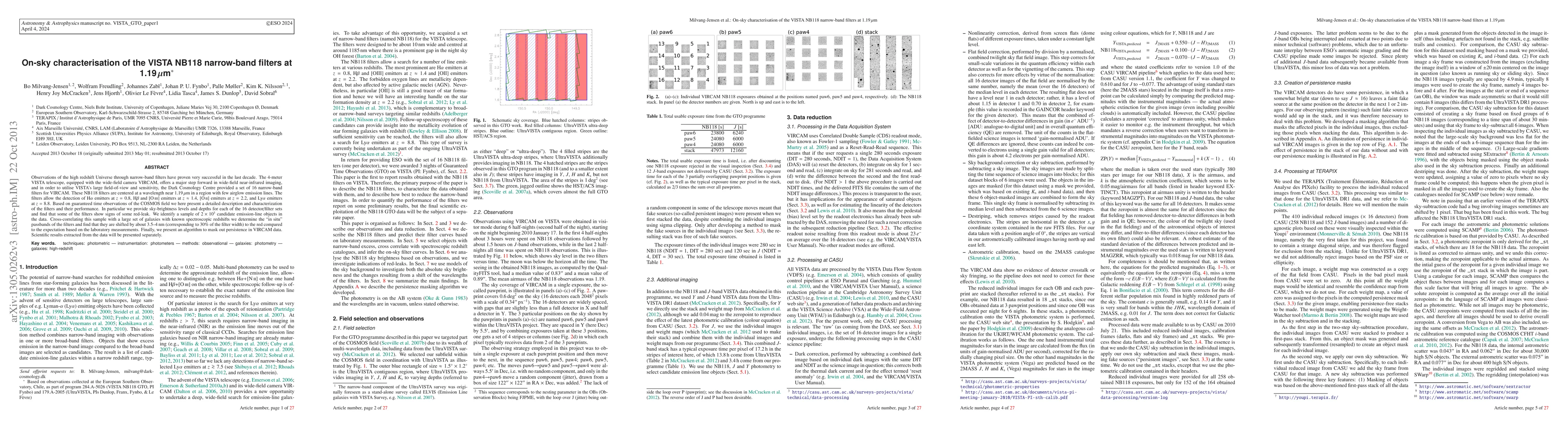 This paper characterizes the performance of VISTA NB118 narrow-band filters centered at 1.19 micron, used for detecting high-redshift emitters. It finds that the filters exhibit red-shifted passbands and some red-leak, and presents an algorithm for masking VIRCAM data persistence.